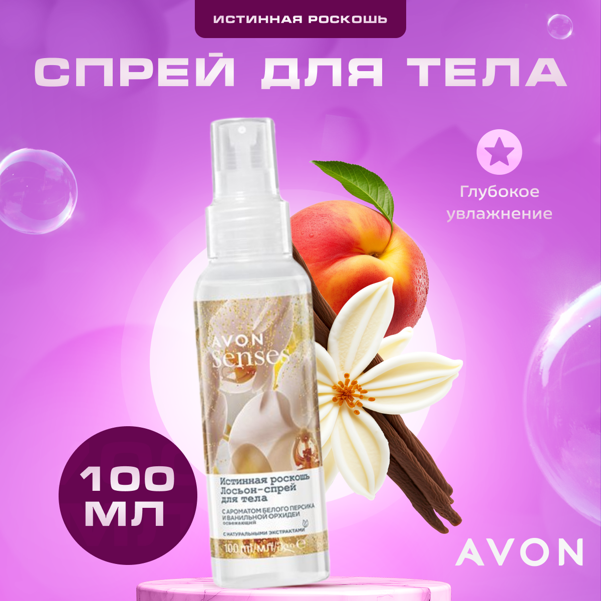 AVON Лосьон-спрей для тела Истинная роскошь, с ароматом белого персика и ванильной орхидеи, 100 мл