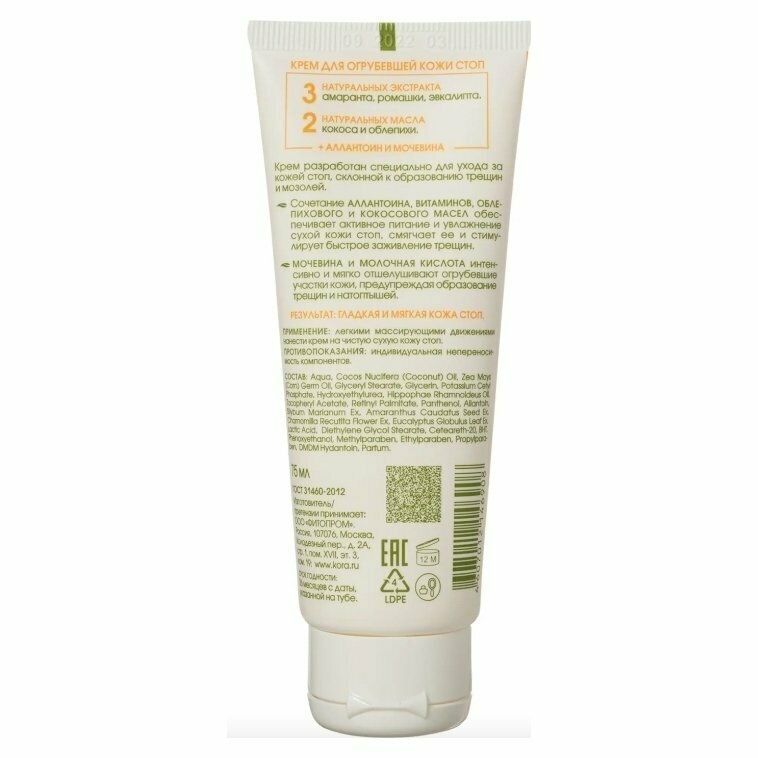 Крем KORA для огрубевшей кожи стоп «Смягчение», 75 мл интересное: