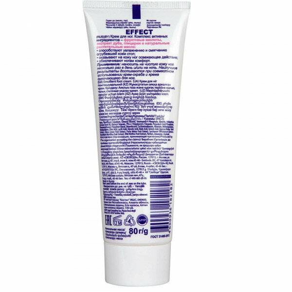 Свобода Крем для ног "Эффект" смягчающий с экстрактом дуба и комплексом фруктовых кислот, 80г