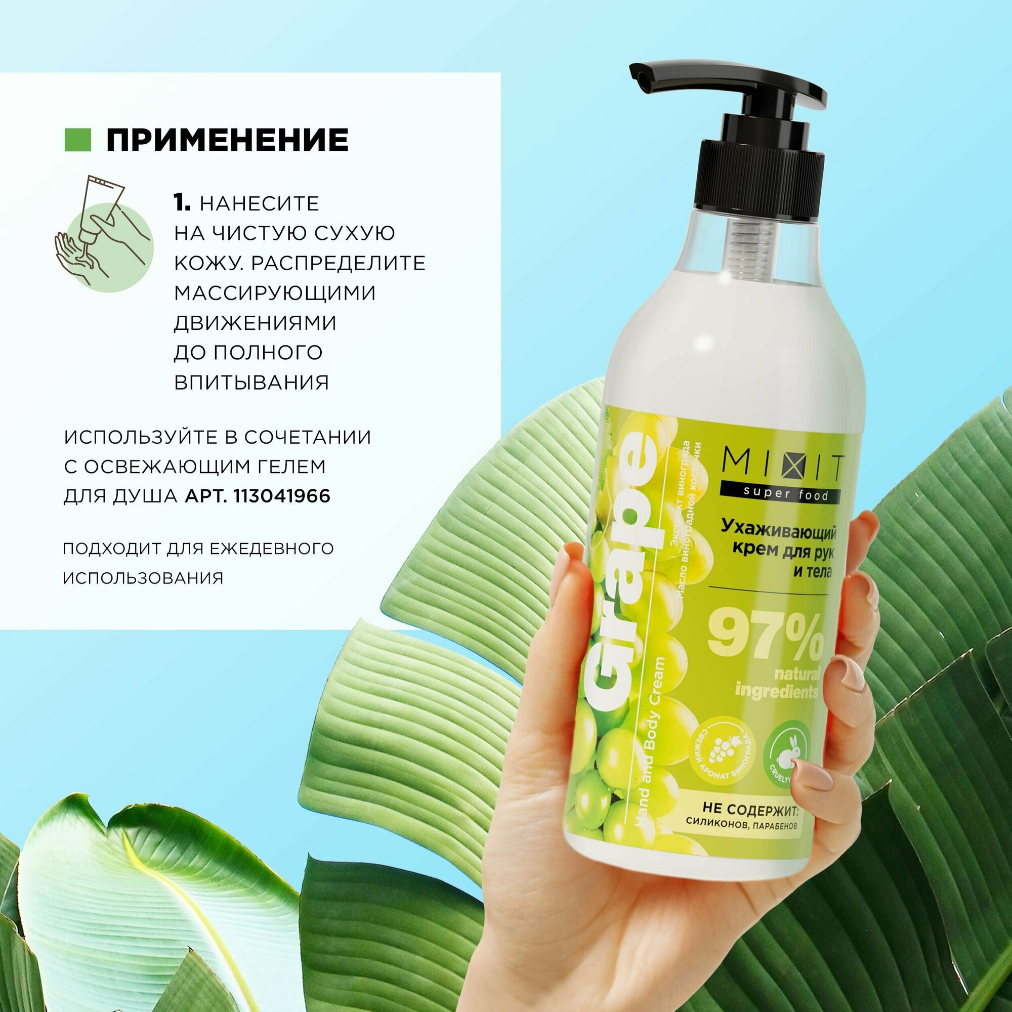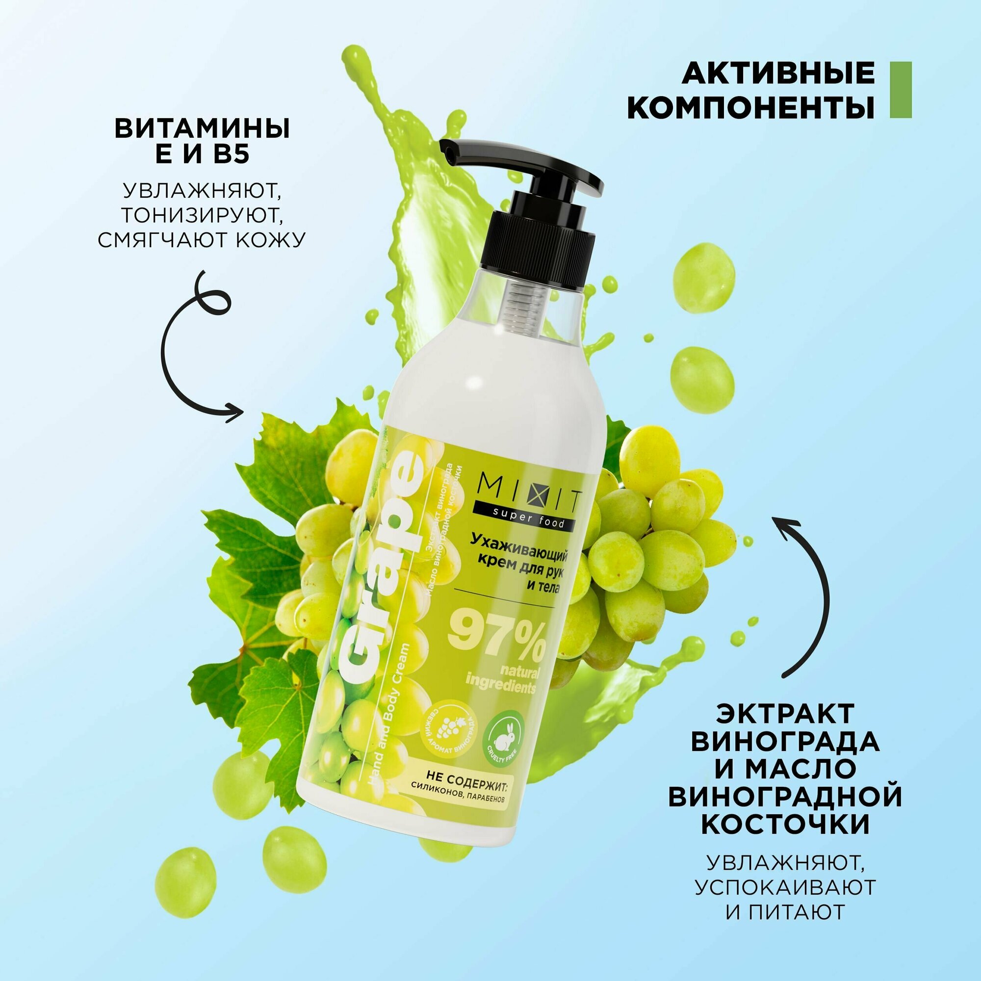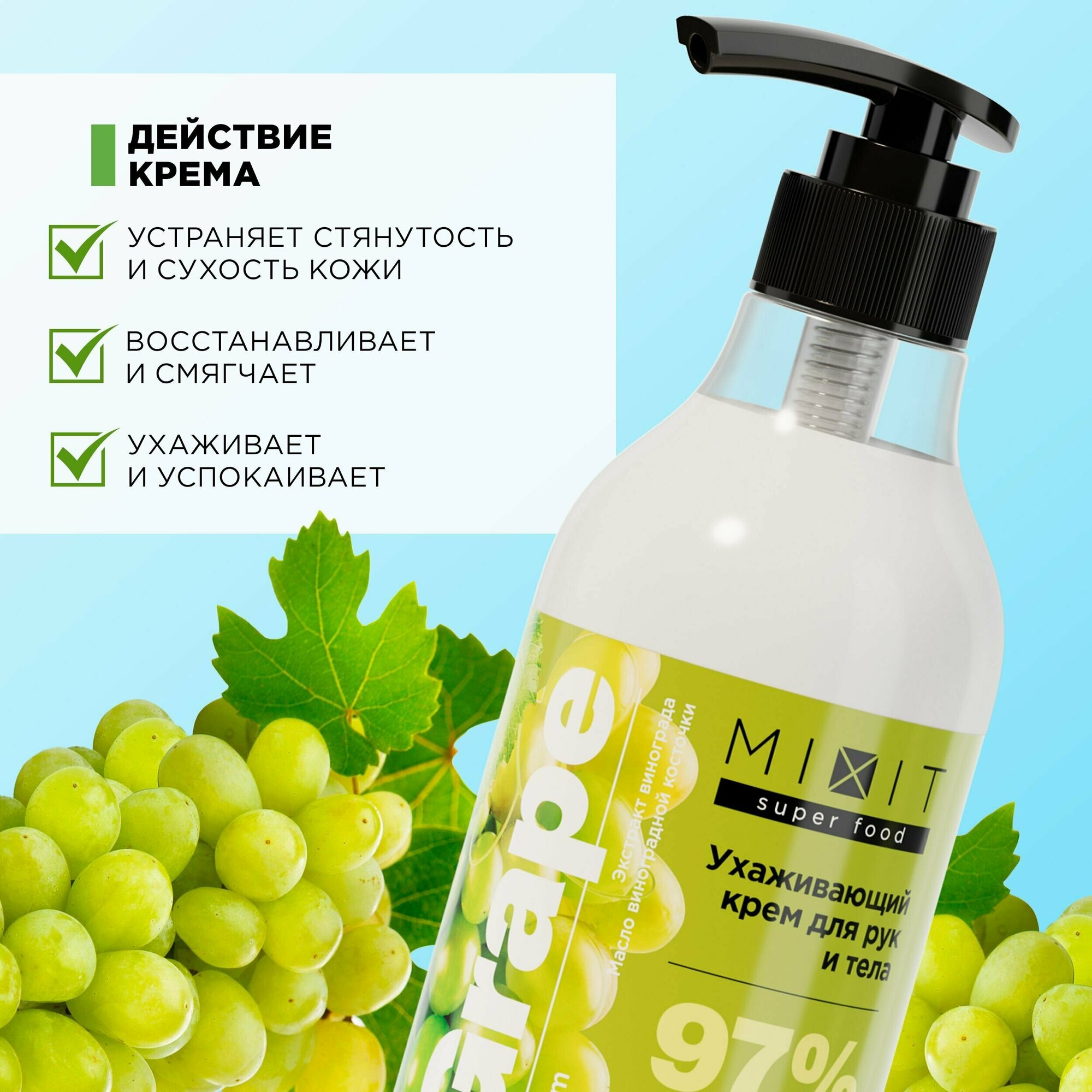 MIXIT Крем для рук и тела MIXIT Super Food с экстрактом винограда и маслом виноградной косточки, 400 мл