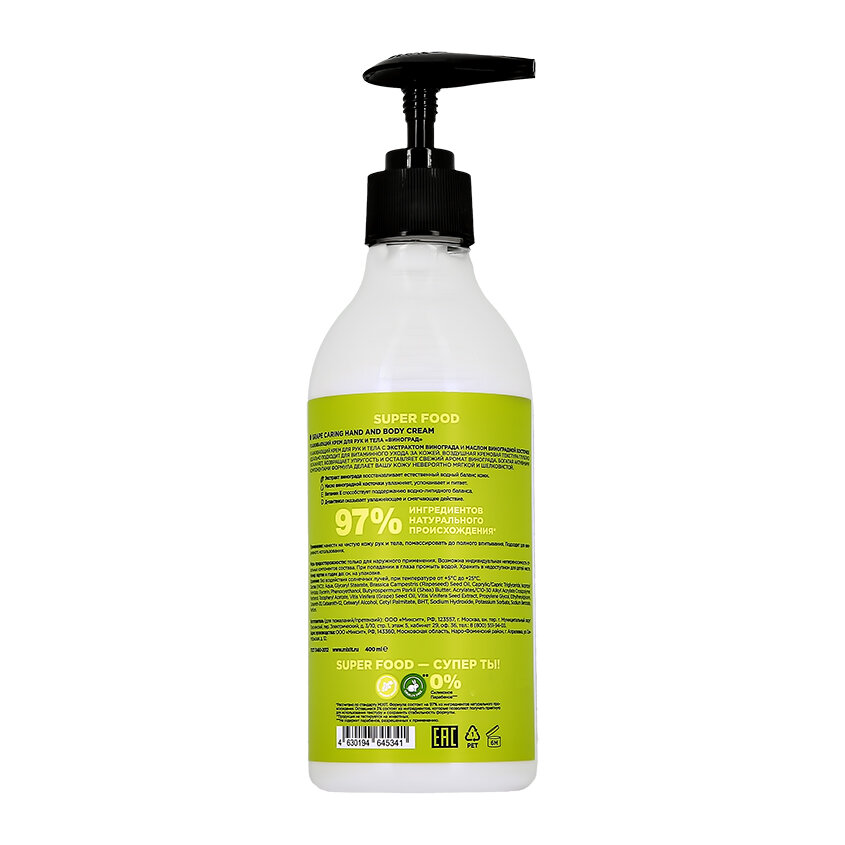 Крем для рук и тела MIXIT SUPER FOOD с экстрактом винограда и маслом виноградной косточки (ухаживающий) 400 мл