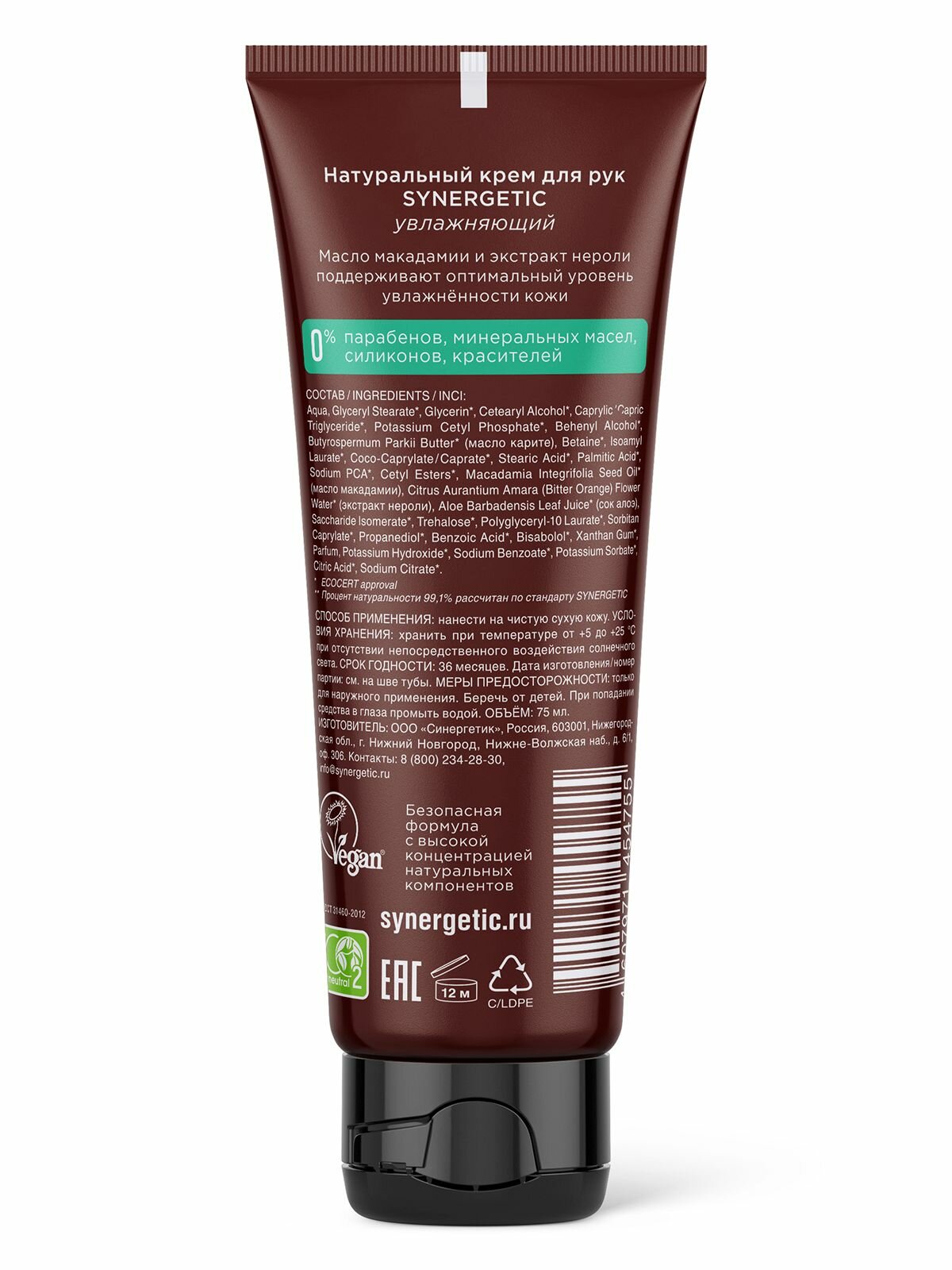 Крем для рук натуральный SYNERGETIC увлажняющий, 75 мл