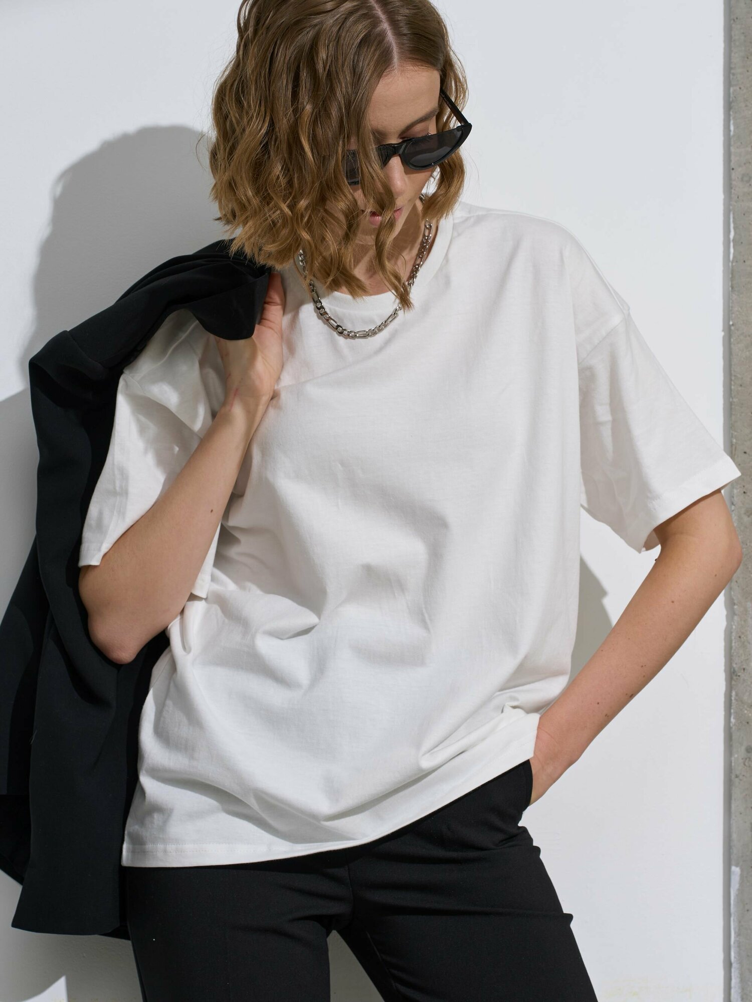 Футболка оверсайз хлопок Uzcotton однотонная базовая свободная плотная Молочный44-46\S