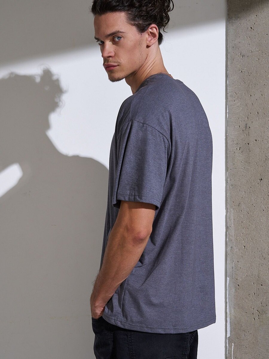 Купить Футболка оверсайз хлопок Uzcotton однотонная базовая свободная плотная МеланжГрафит56-58\3XL