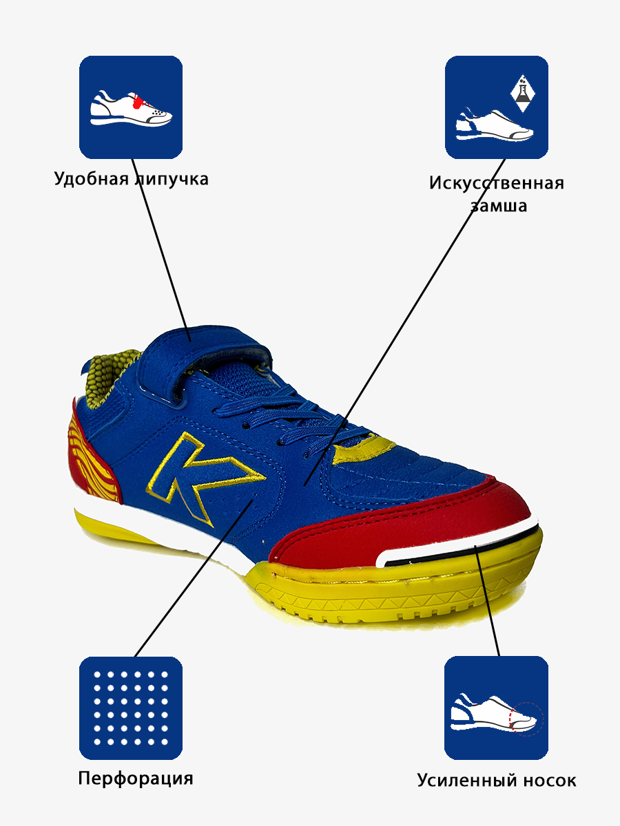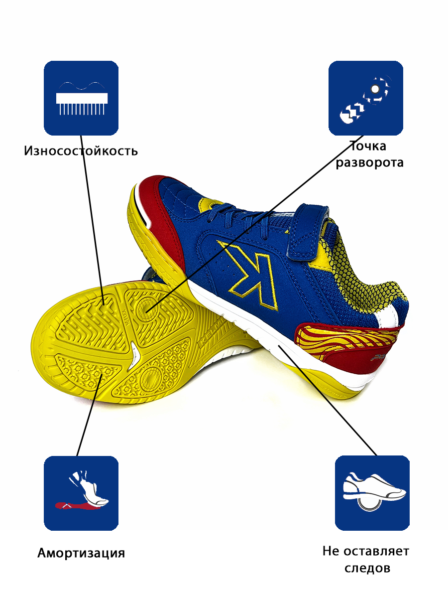 Футзальная Kelme PRECISION ELASTIC 55986, размер 34, цвет синий,желтый интересное: