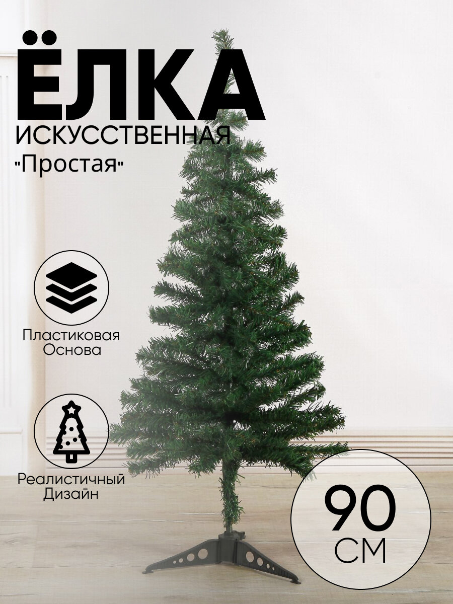 Купить Ёлка простая 90 см. d иголок 6 см. веток 90 шт. пластик подставка 701416