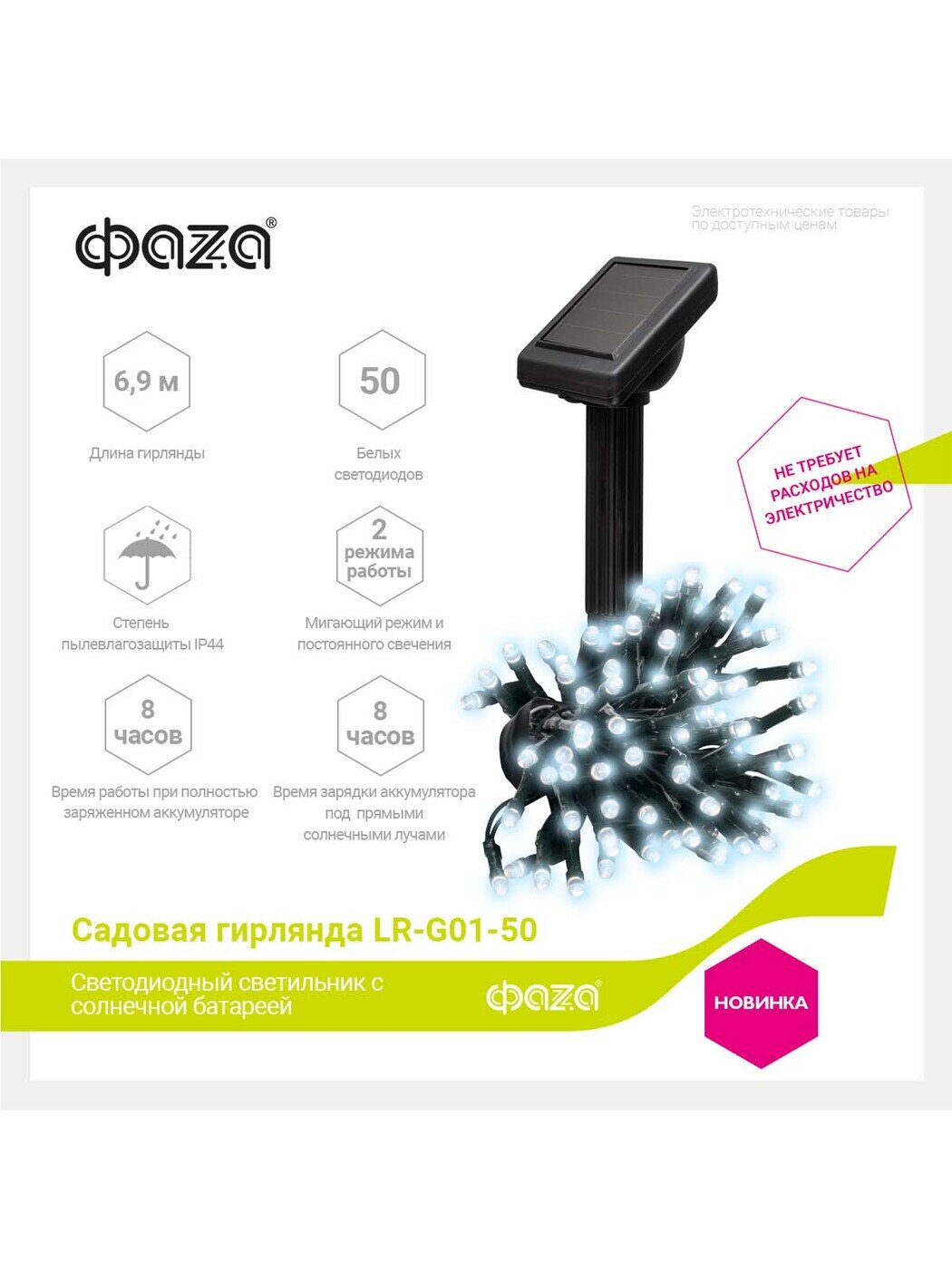 Купить Светильник-гирлянда на солнечное батарее ФAZA SLR-G01-50W