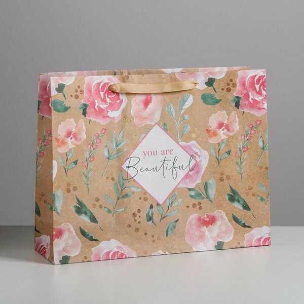 Пакет подарочный крафтовый горизонтальный, упаковка, "You are beautiful", 40 x 31 x 11.5 см интересное: