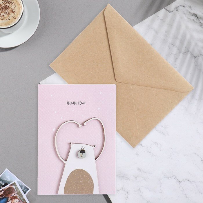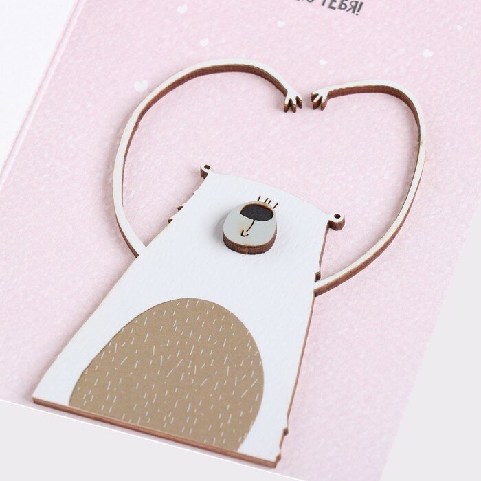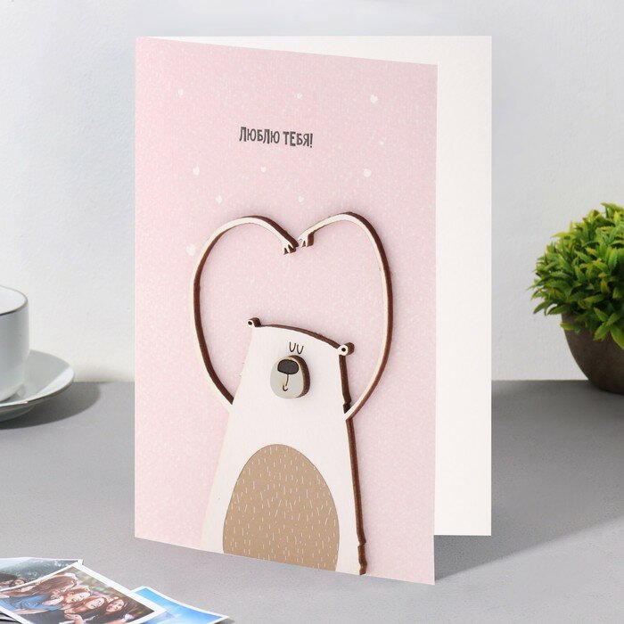 Открытка с деревянным элементом "Люблю тебя!" ручная работа, розовый фон, 14,7х10,5 см 9743679 интересное: