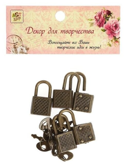 Купить Замочек с ключиком для шкатулки металл набор 5 шт С286 бронза 3,1х1,7 см 3531295