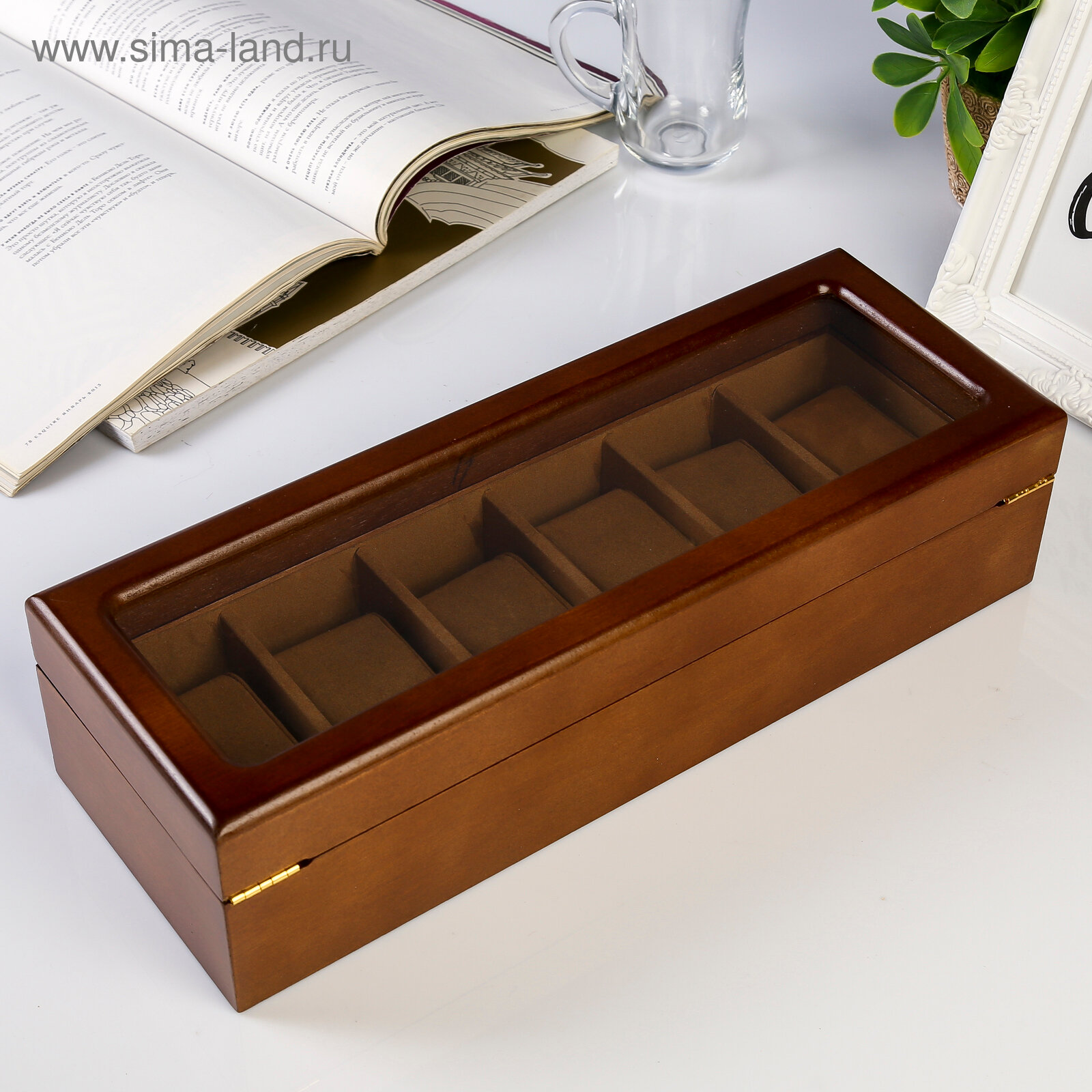 Шкатулка дерево под часы 6 отделений "Стиль" коричневая 12,7х8х33 см интересное: