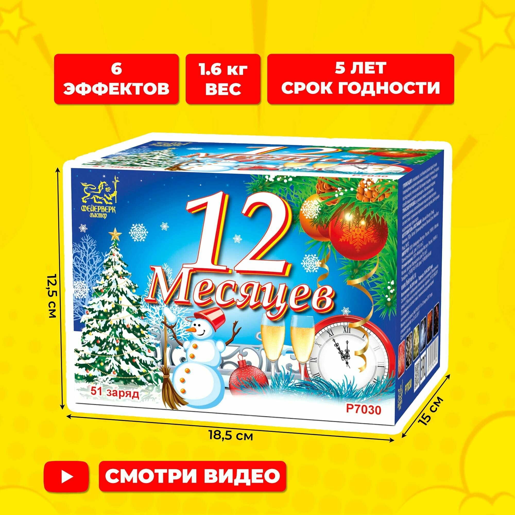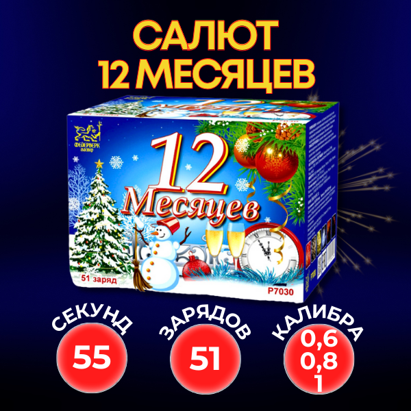 Салют фейерверк "12 Месяцев" калибр 0,6" - 1" / 51 заряд интересное: