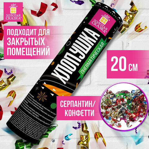 Хлопушка Золотая Сказка пневматическая 20 см, фольга, серпантин/конфетти, ассорти, 591472 интересное: