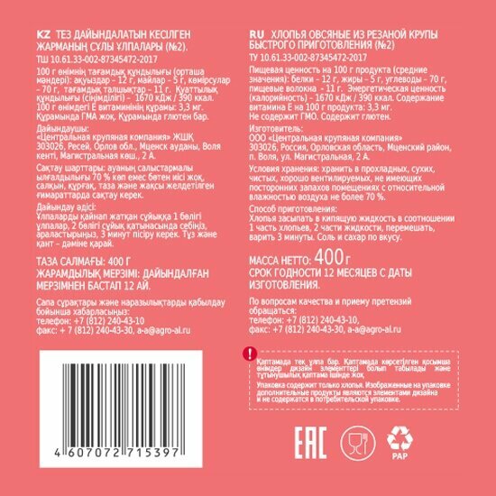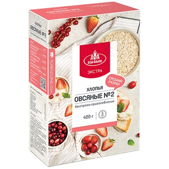 Хлопья овсяные №2 "Агро-Альянс Экстра" (средний размер) 400 г интересное: