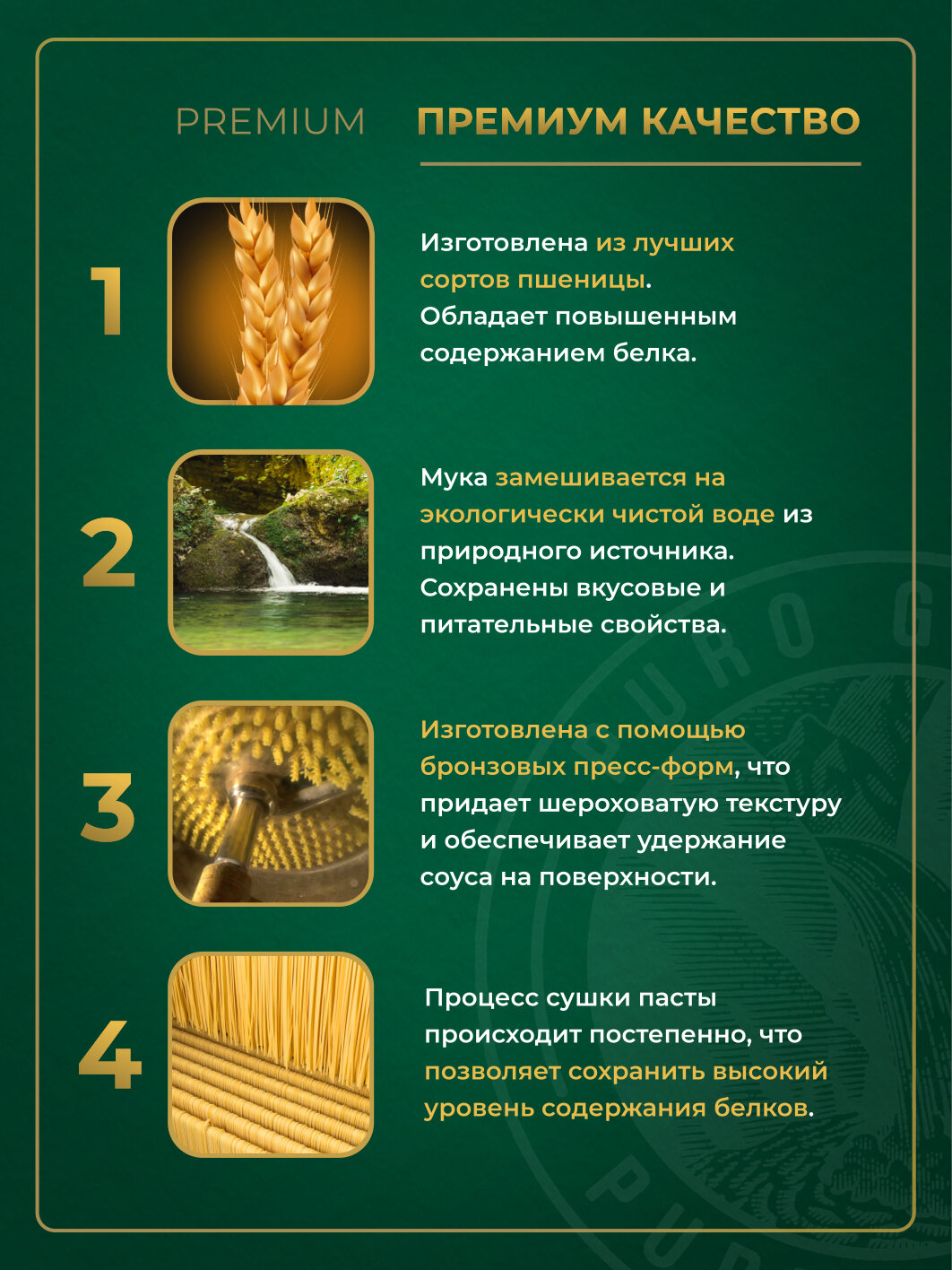 | Особенности | из твердых сортов пшеницы |
