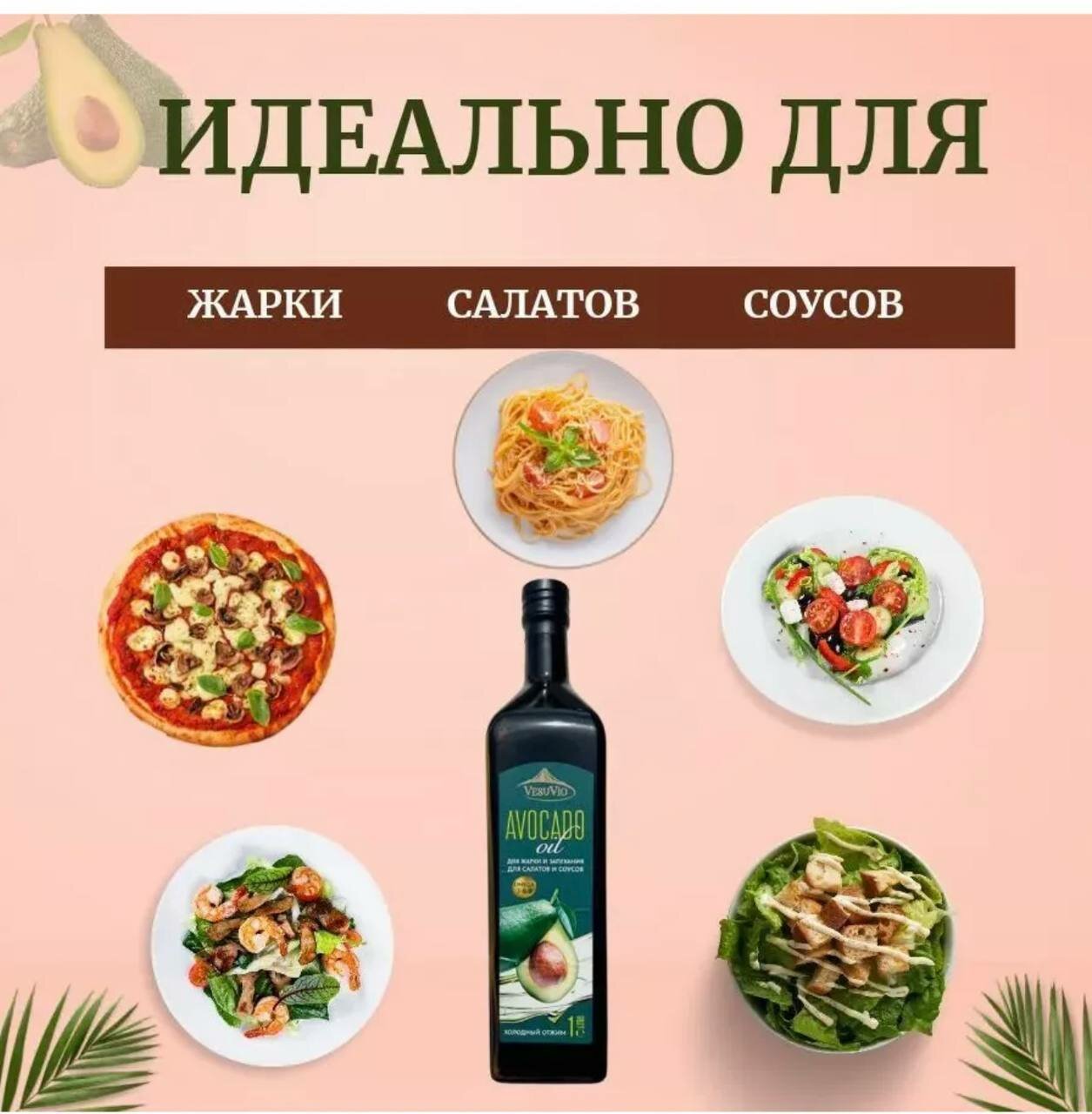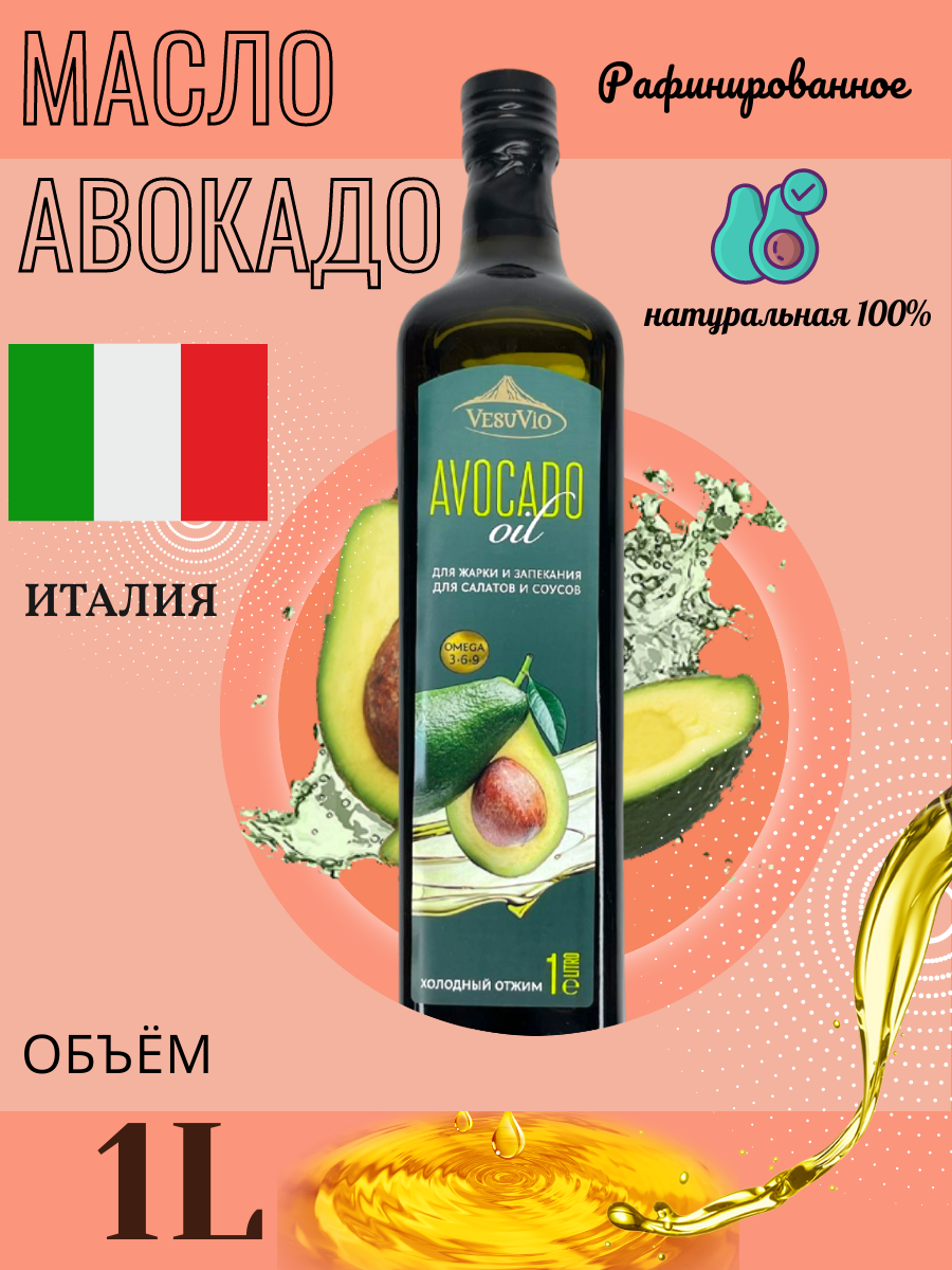 Купить Масло авокадо для жарки, для салатов, Oil рафинированное, Vesuvio, для запекания,. Италия, 1 литр