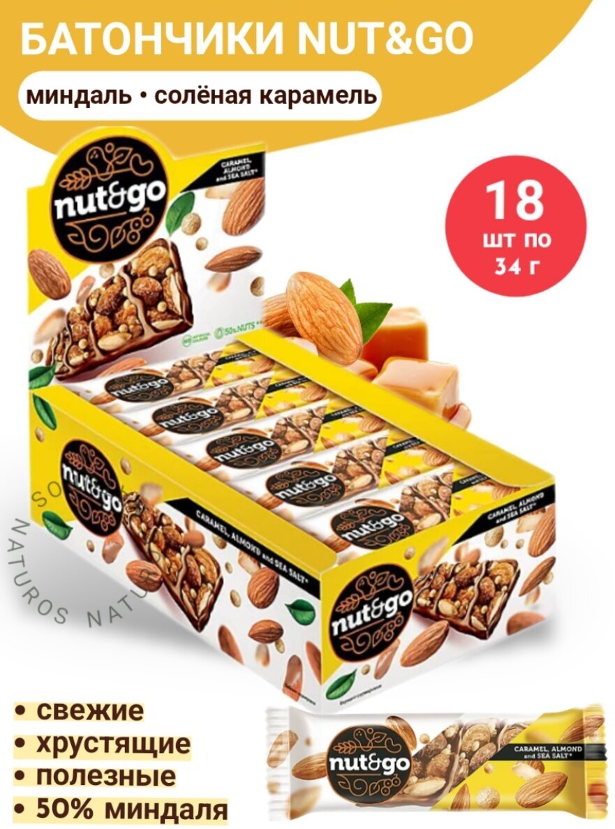 Купить Батончик Nut and Go миндальный,18 шт по 34 г
