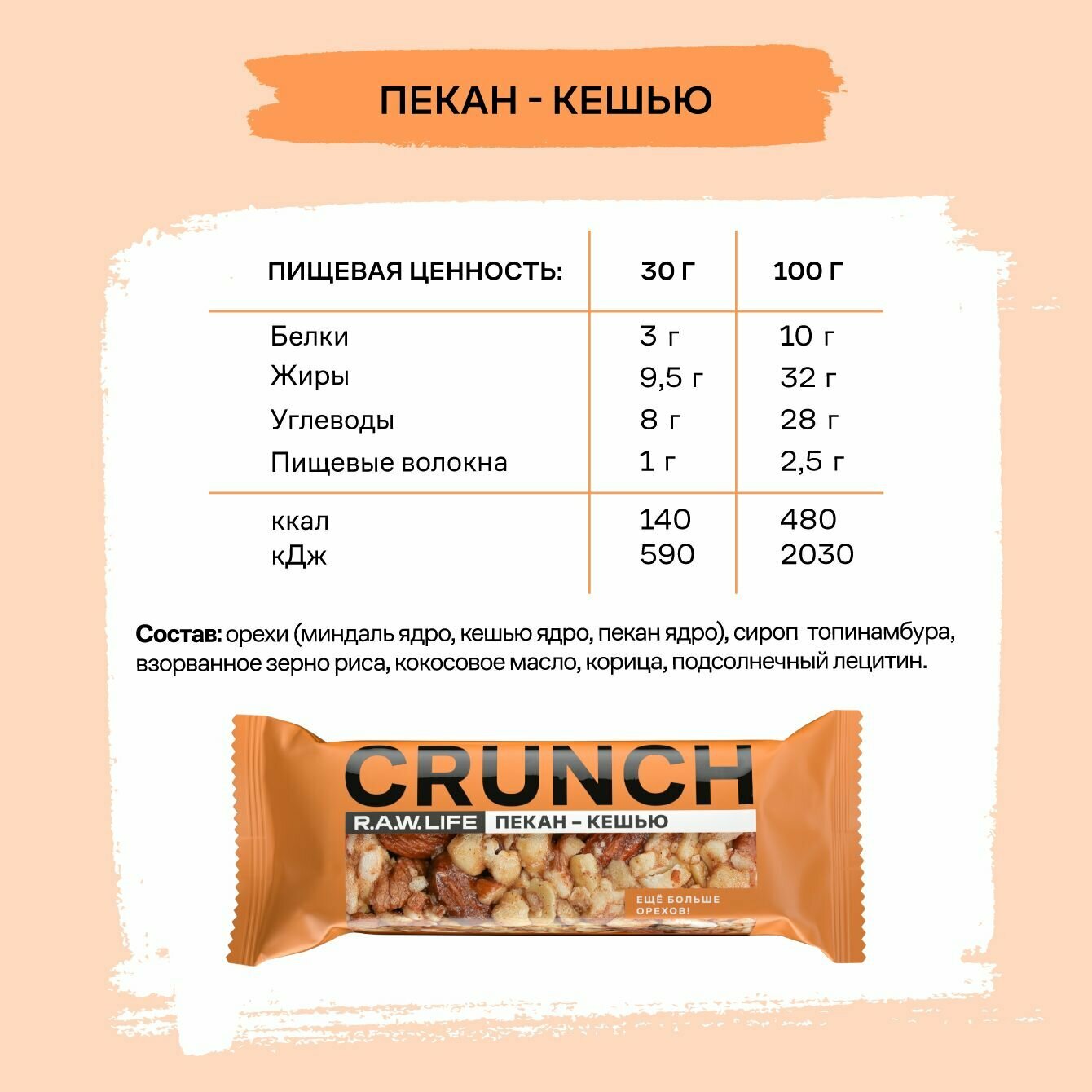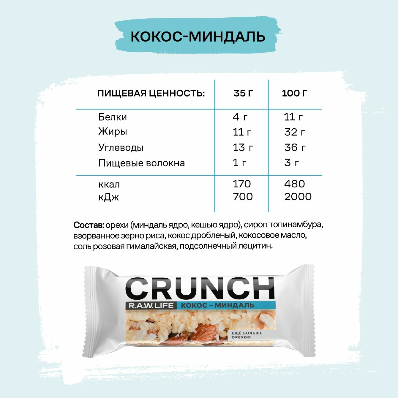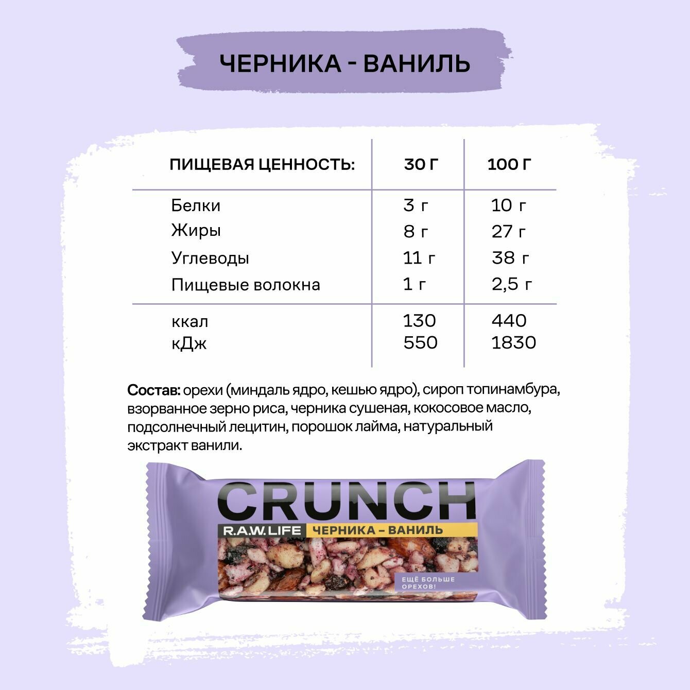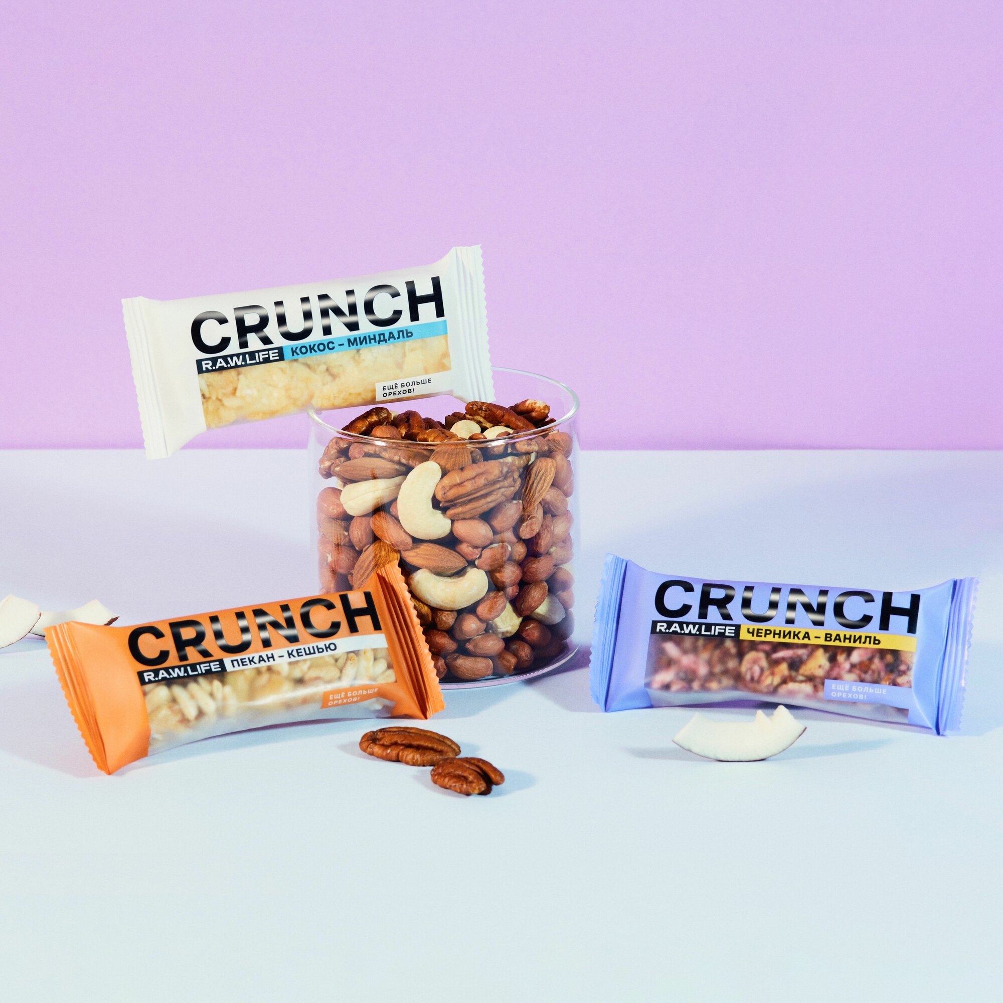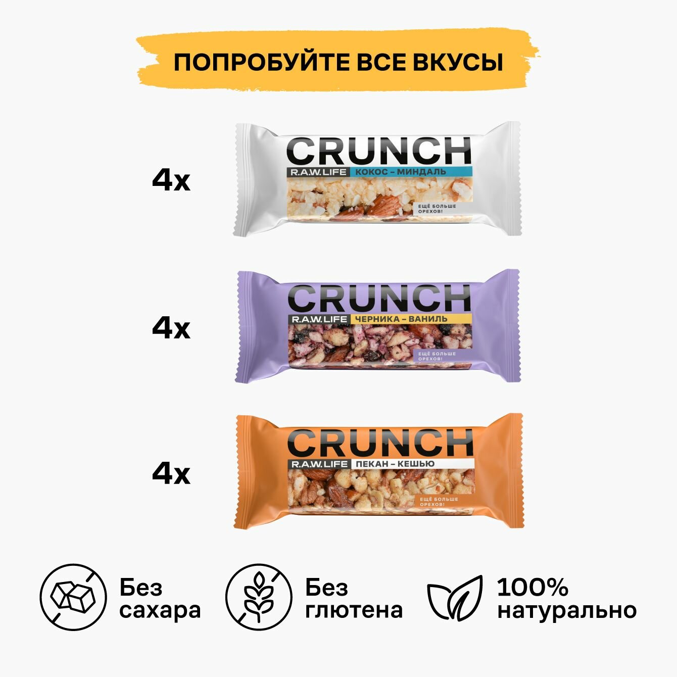 Энергетические батончики без сахара R.A.W.LIFE CRUNCH / Злаковые, натуральные, много орехов / Ассорти 12 шт по 30 гр