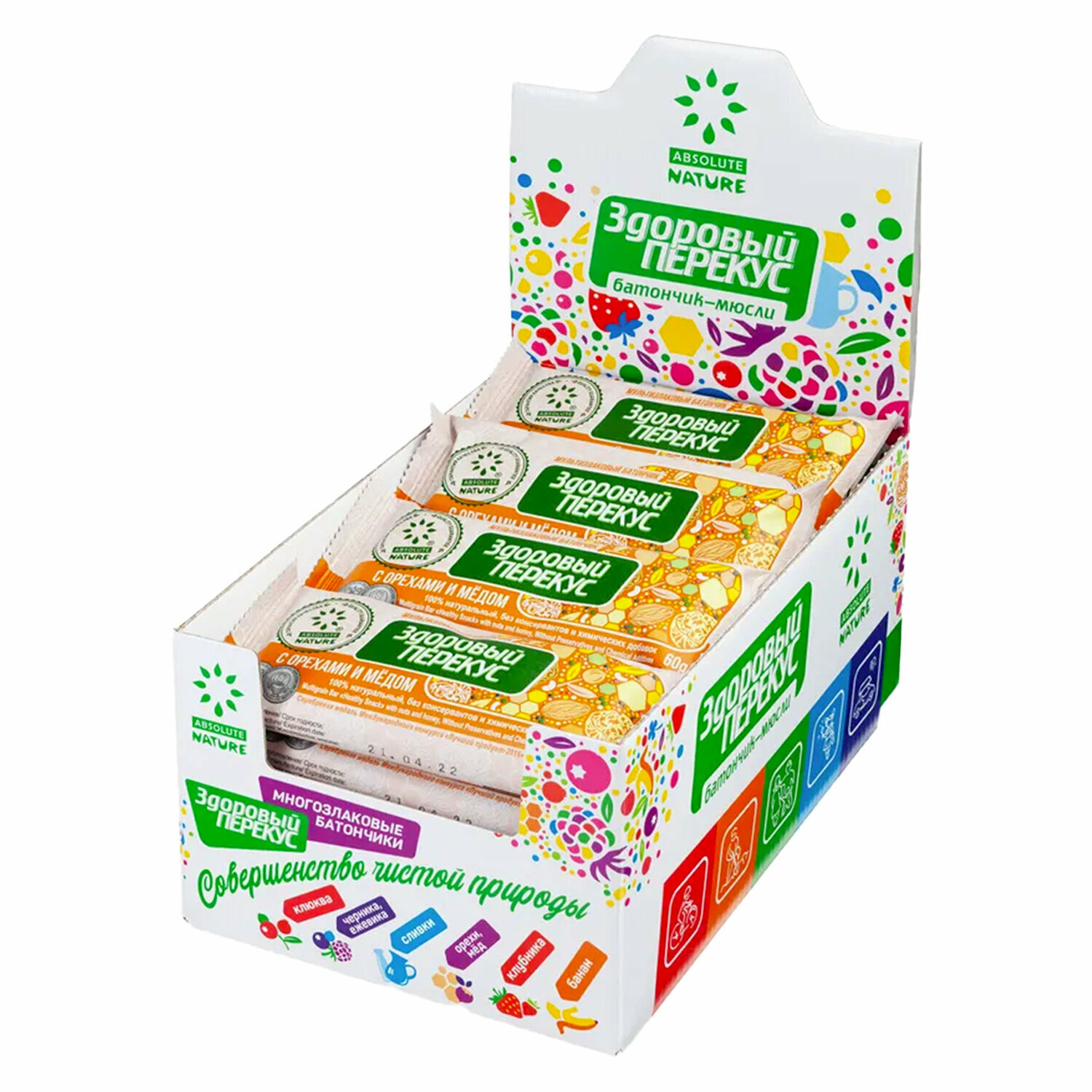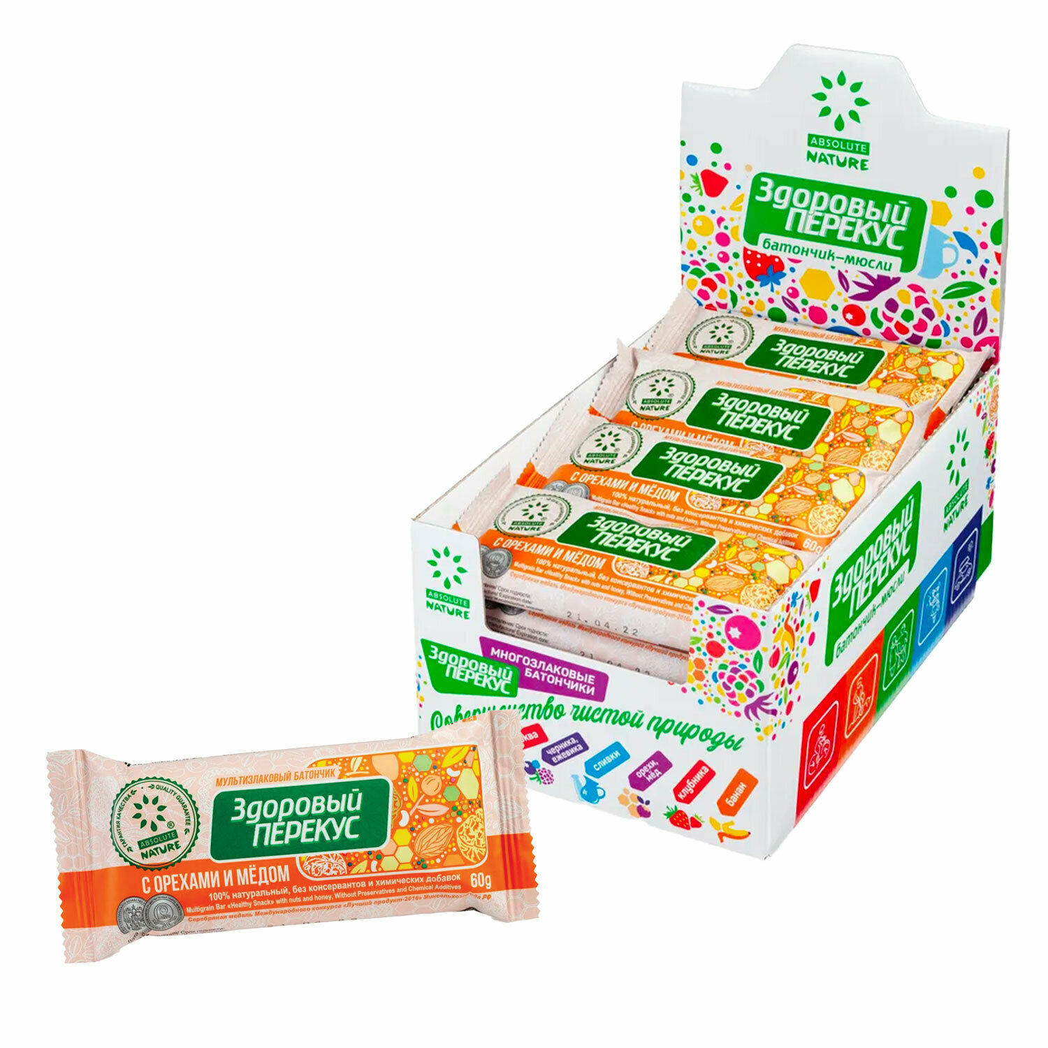Absolute NATURE Батончики "Здоровый перекус" с орехами и мёдом 60г (20 штук в блоке) интересное: