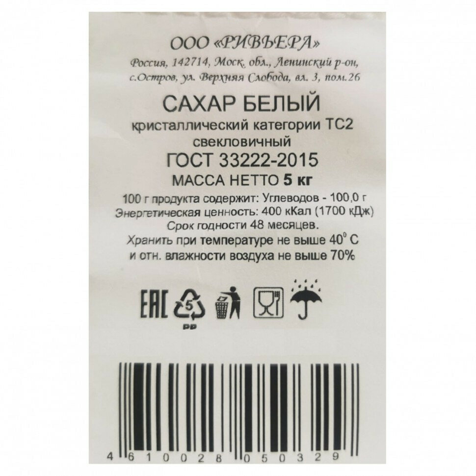 Сахар-песок 5 кг, мешок, 500316 интересное:
