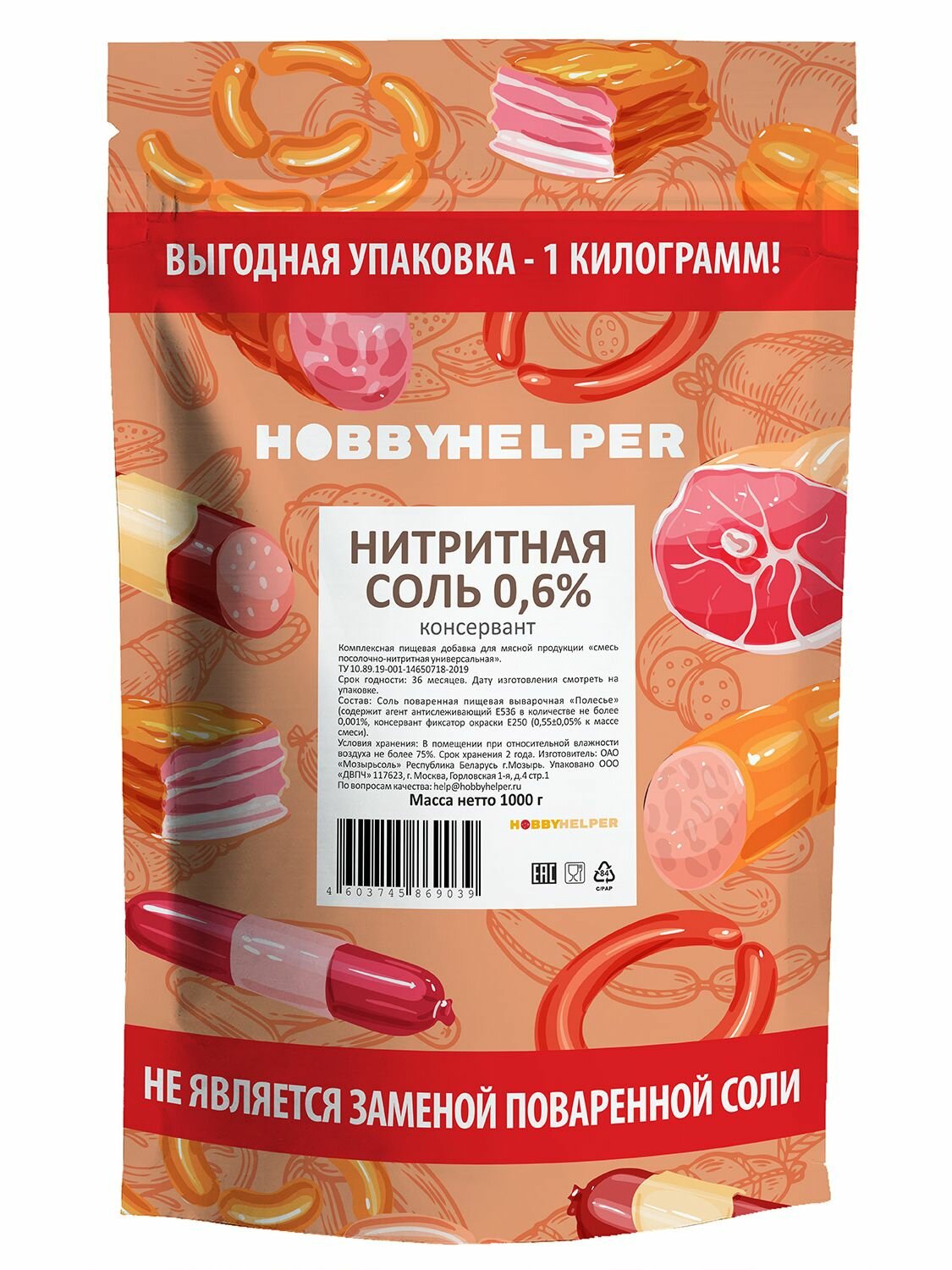 Соль нитритная для колбас HOBBYHELPER 1 кг (консервант) интересное: