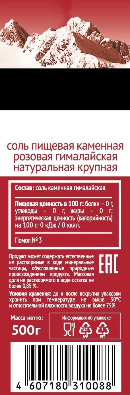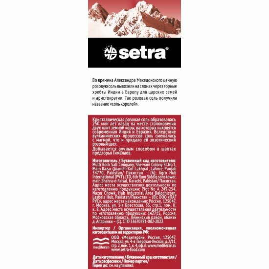 Соль SETRA розовая гималайская крупная 500г интересное:
