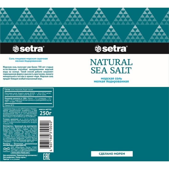 Соль морская Setra мелкая йодированная помол №0, туба 250 г интересное: