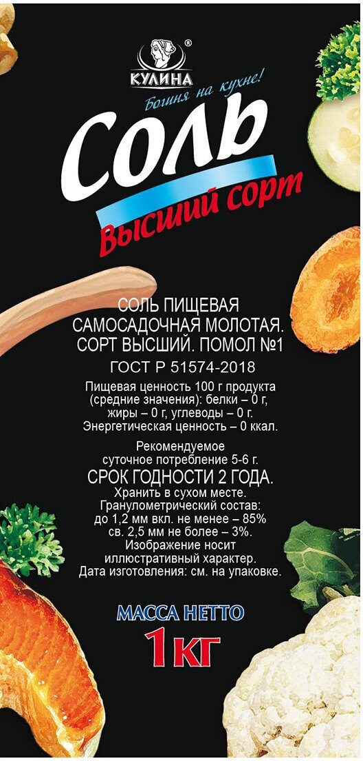 Соль пищевая , высший сорт "Кулина" , средний помол,1 кг интересное: