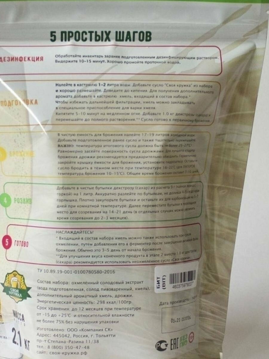 | Дополнительная информация | для приготовления до 10 литров домашнего пива; хранить в сухом и прохладном месте |