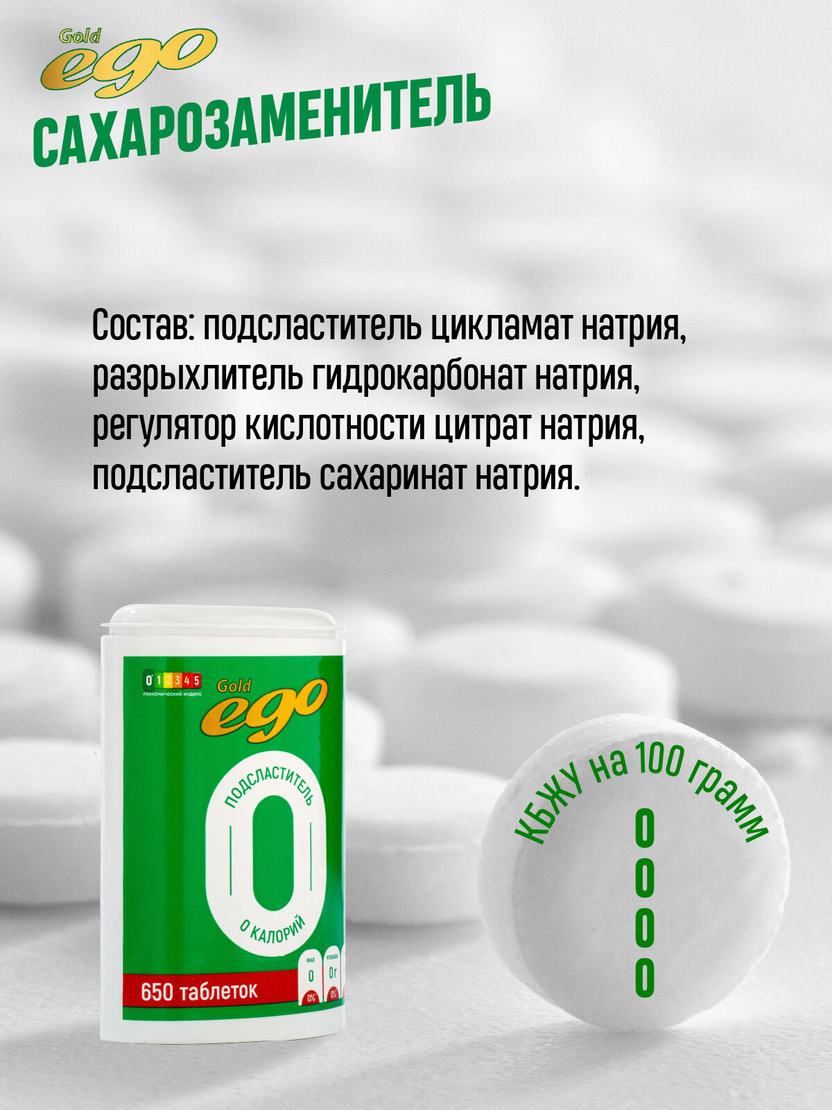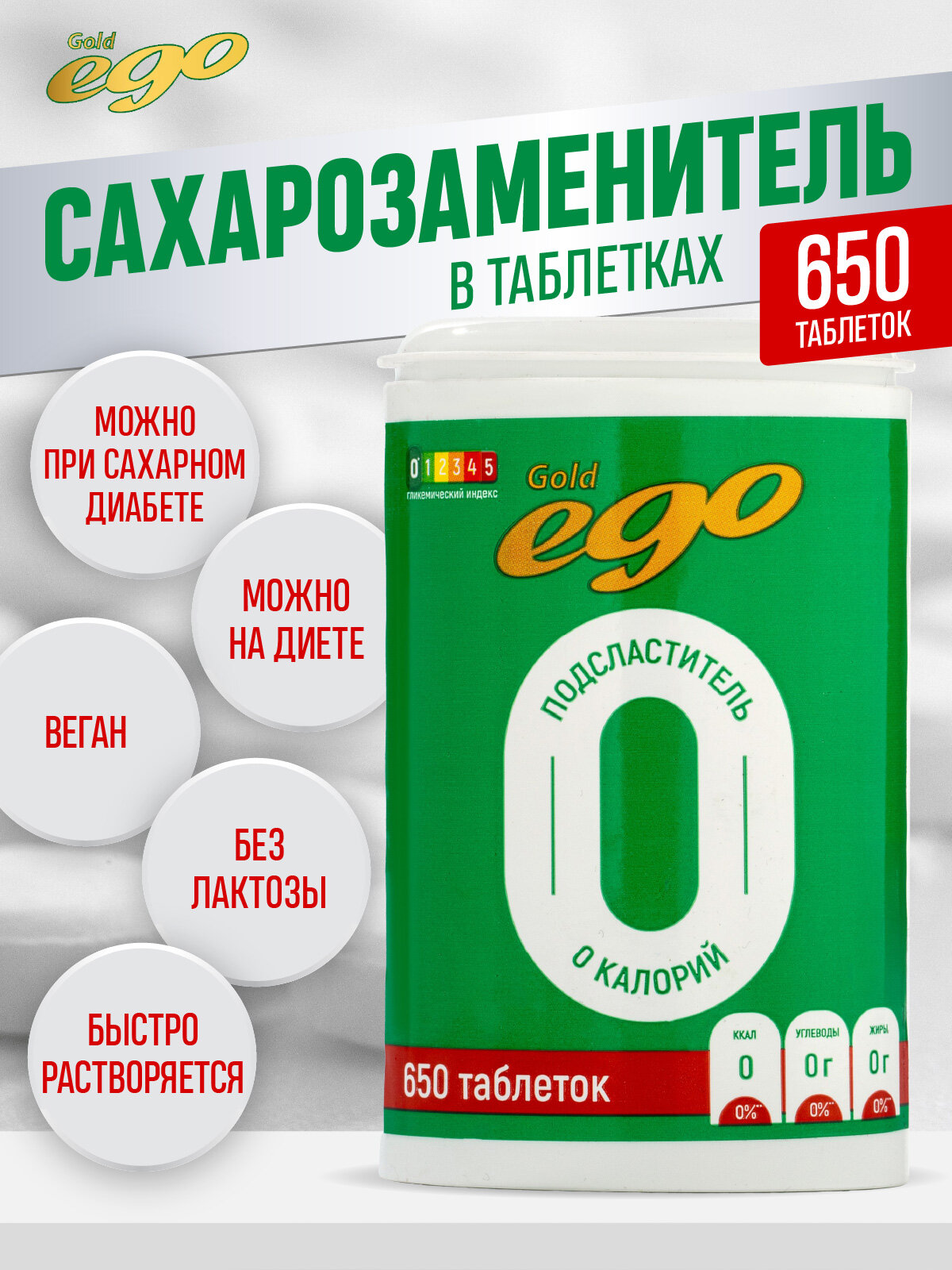 Подсластитель "Эго Голд" 650 таблеток / сахарозаменитель / без лактозы интересное: