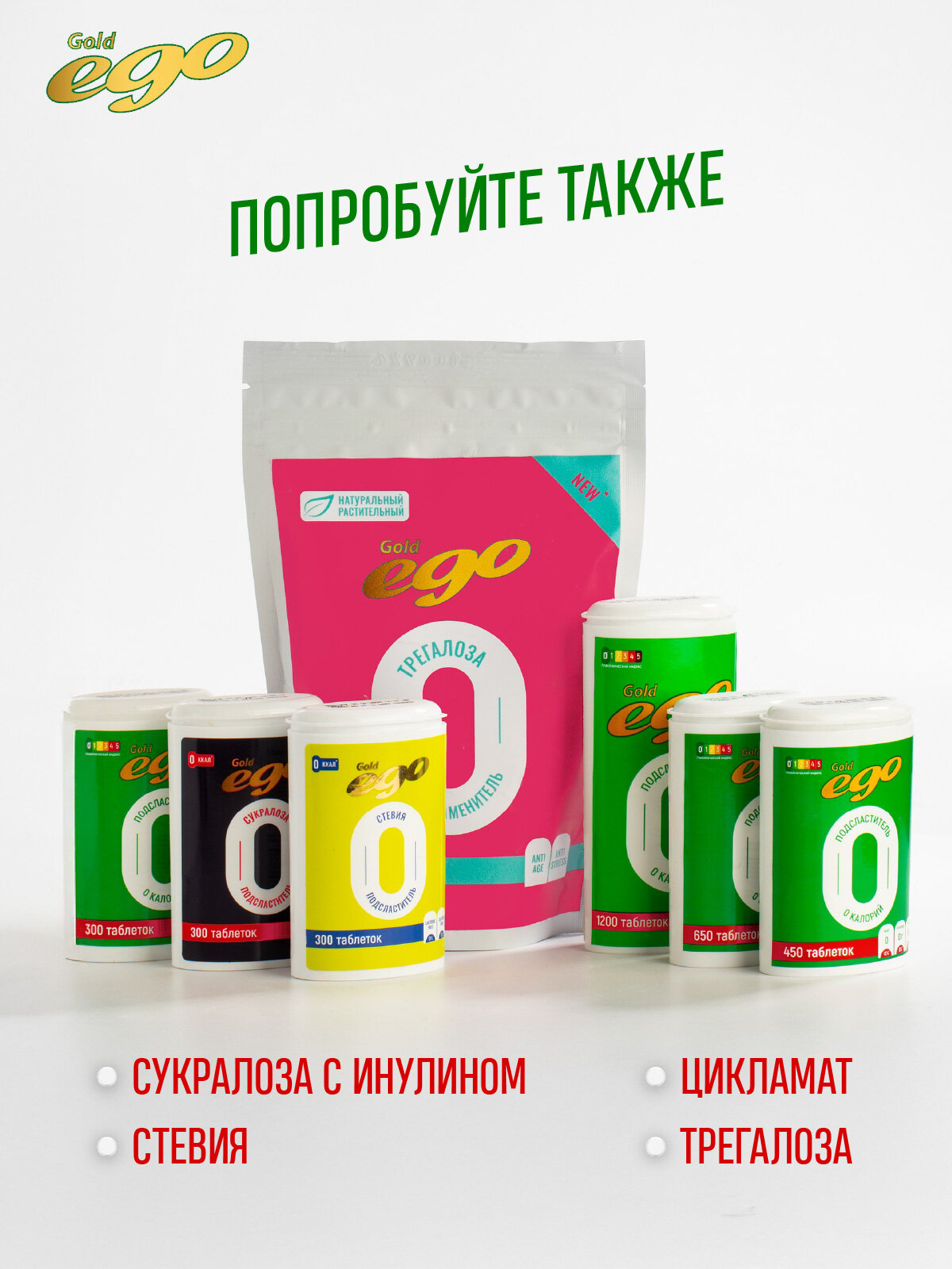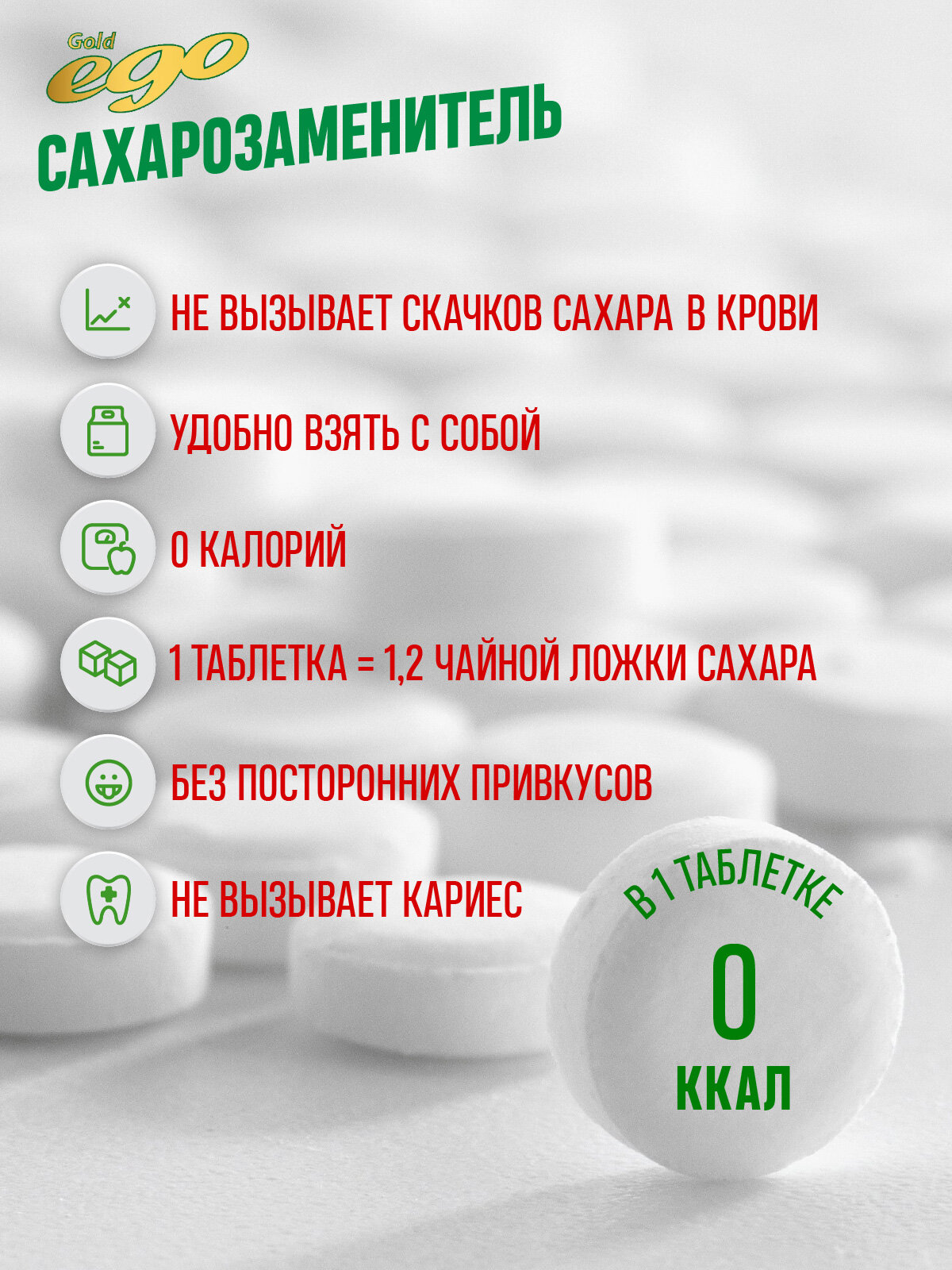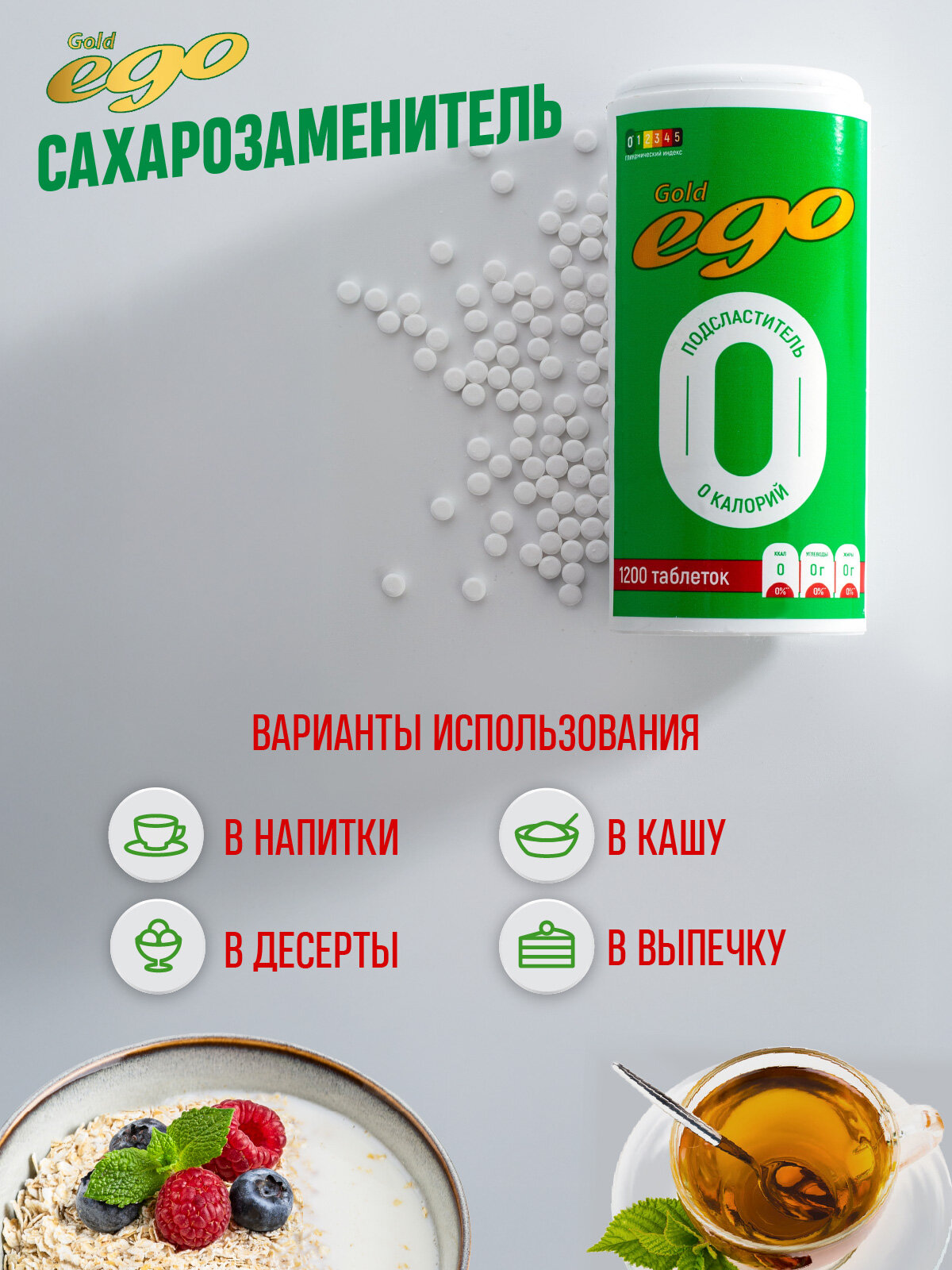 Подсластитель "Эго Голд" 1200 таблеток / сахарозаменитель / без лактозы интересное: