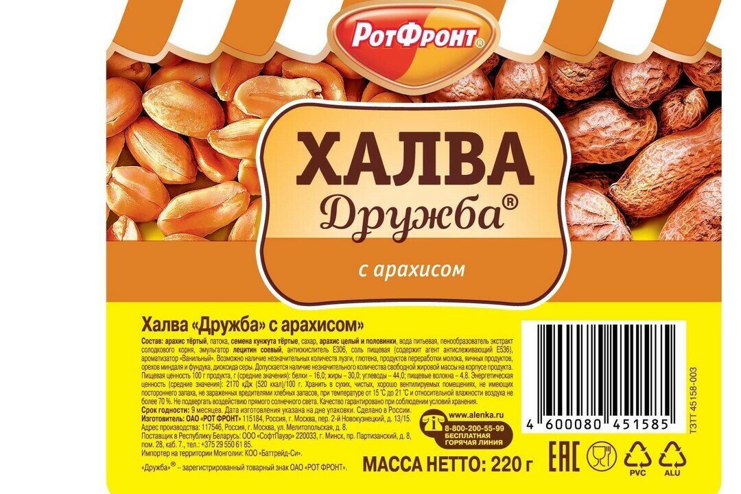 Халва РОТ фронт "Дружба" с арахисом, 220 г, РФ23672