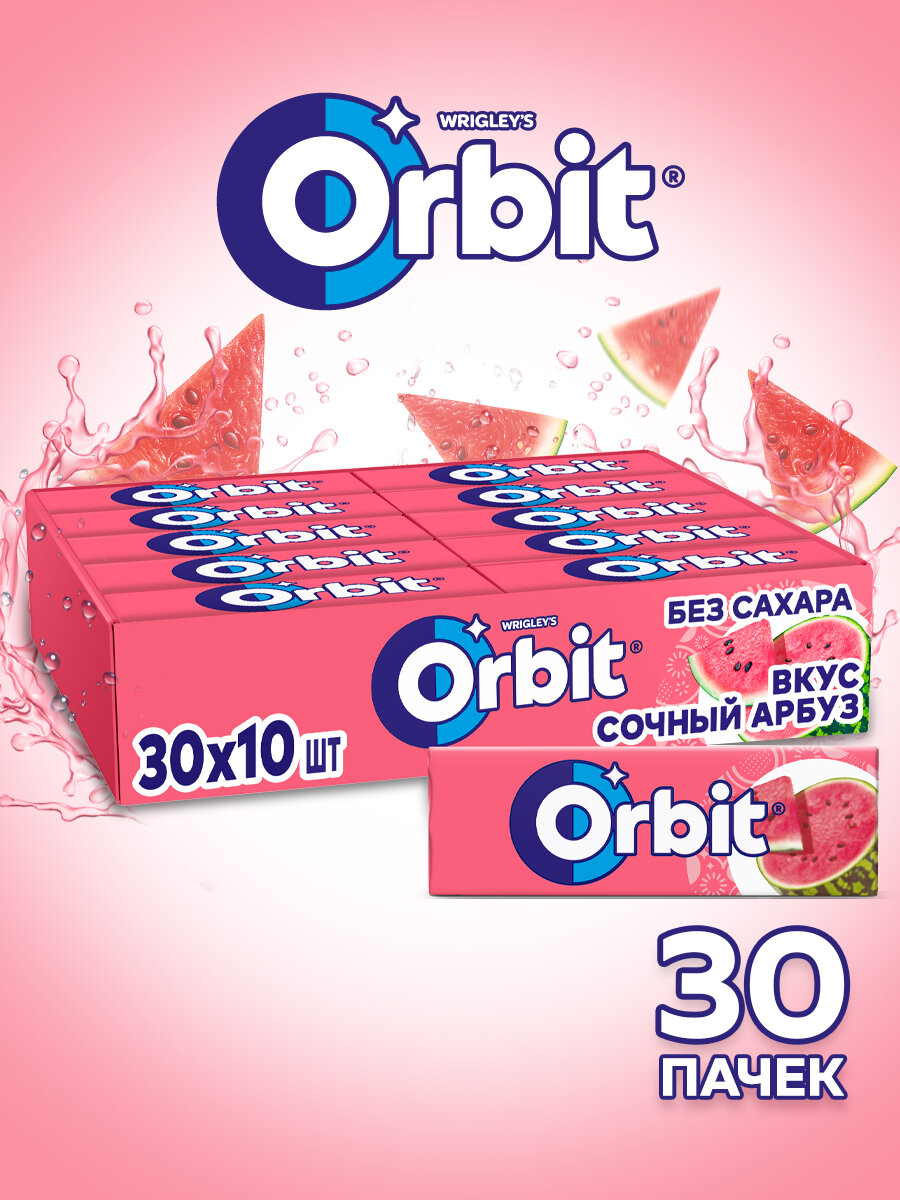 Жевательная резинка ORBIT Без сахара со вкусом "Сочный арбуз" 30 шт. х 13.6 гр. Большая упаковка