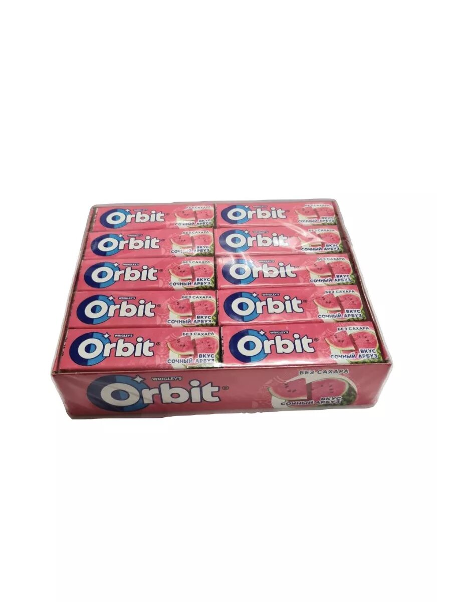 Orbit "Сочный арбуз" жевательная резинка без сахара, 10 пачек по 13,6 г