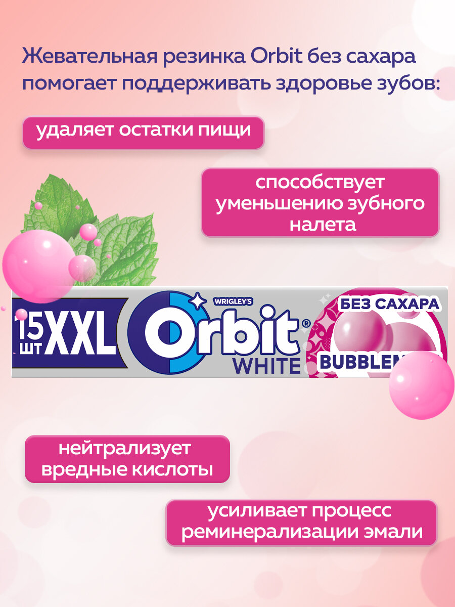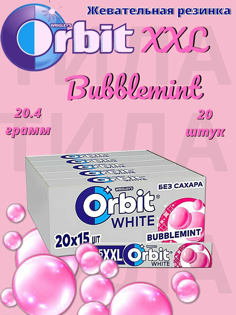 СохранитьOrbit White XXL жевательная резинка без сахара "Bubblemint", 20 пачек по 20,4 гр интересное:
