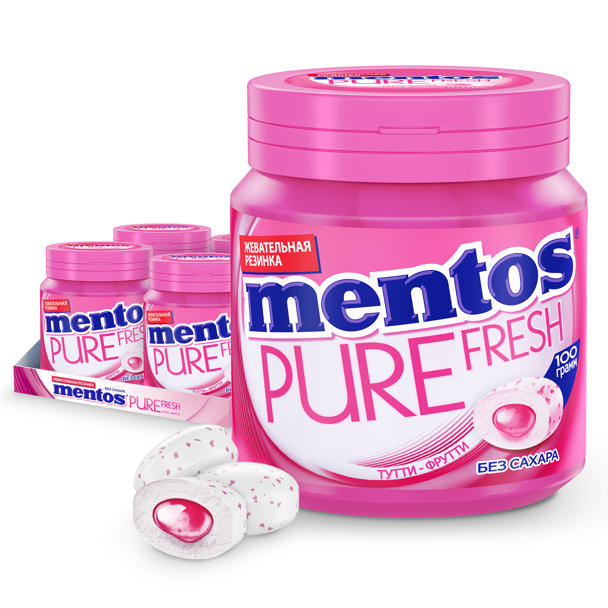 Жевательная резинка Mentos Pure Fresh Тутти-Фрутти, 4 шт. по 100 г.