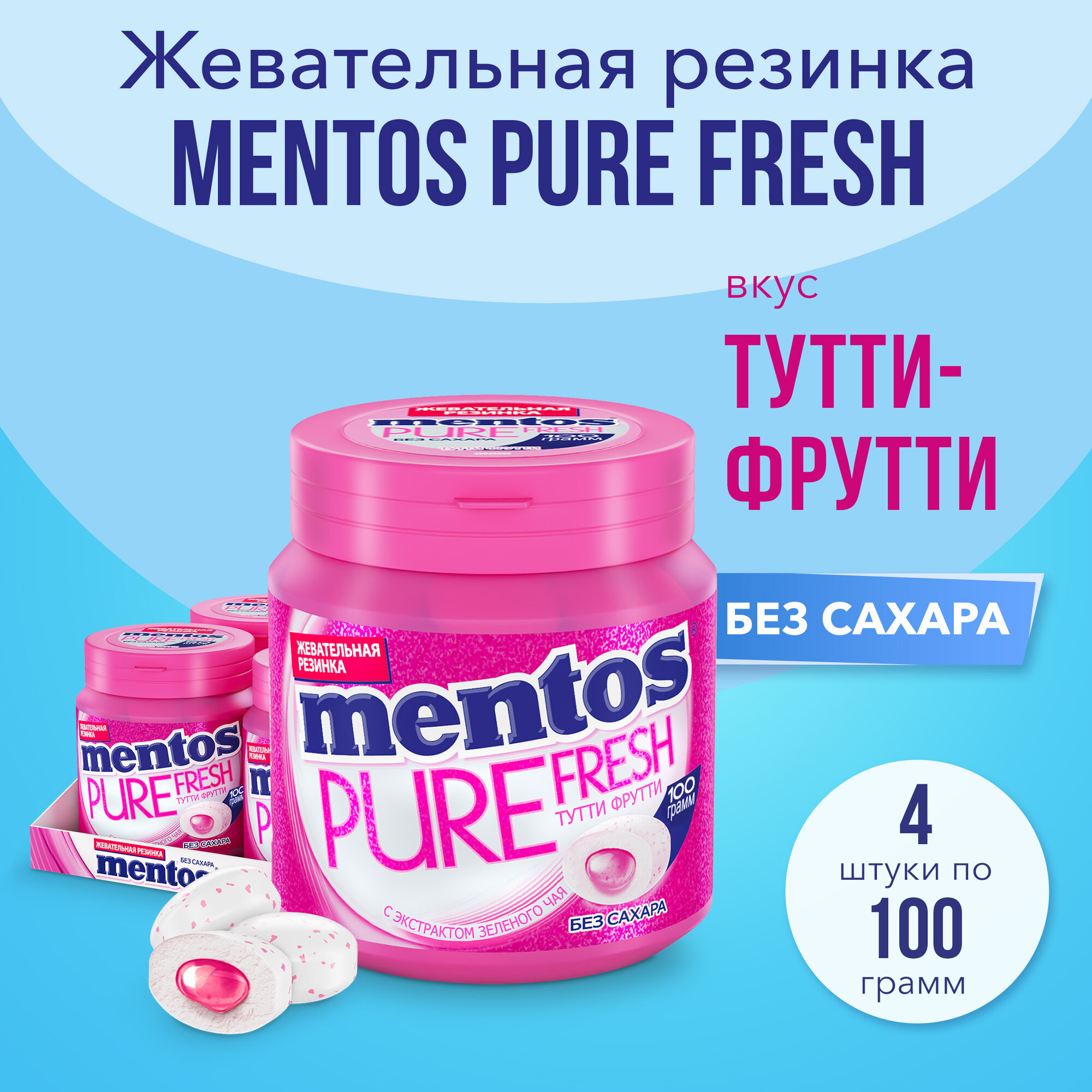 Купить Жевательная резинка Mentos Pure Fresh вкус Тутти-Фрутти, 4 шт по 100 г