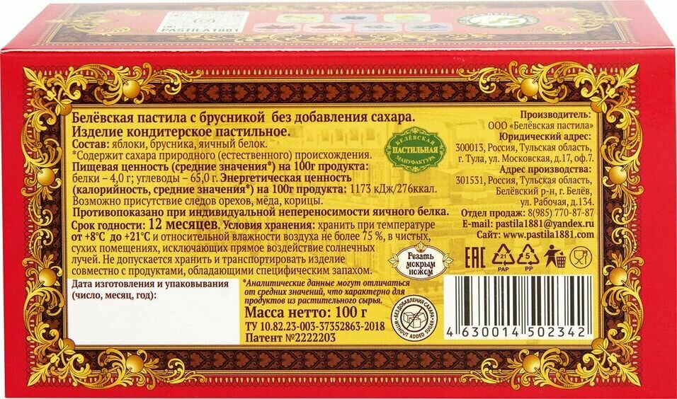 СохранитьБелёвская пастила без сахара с брусникой, 100 грамм интересное: