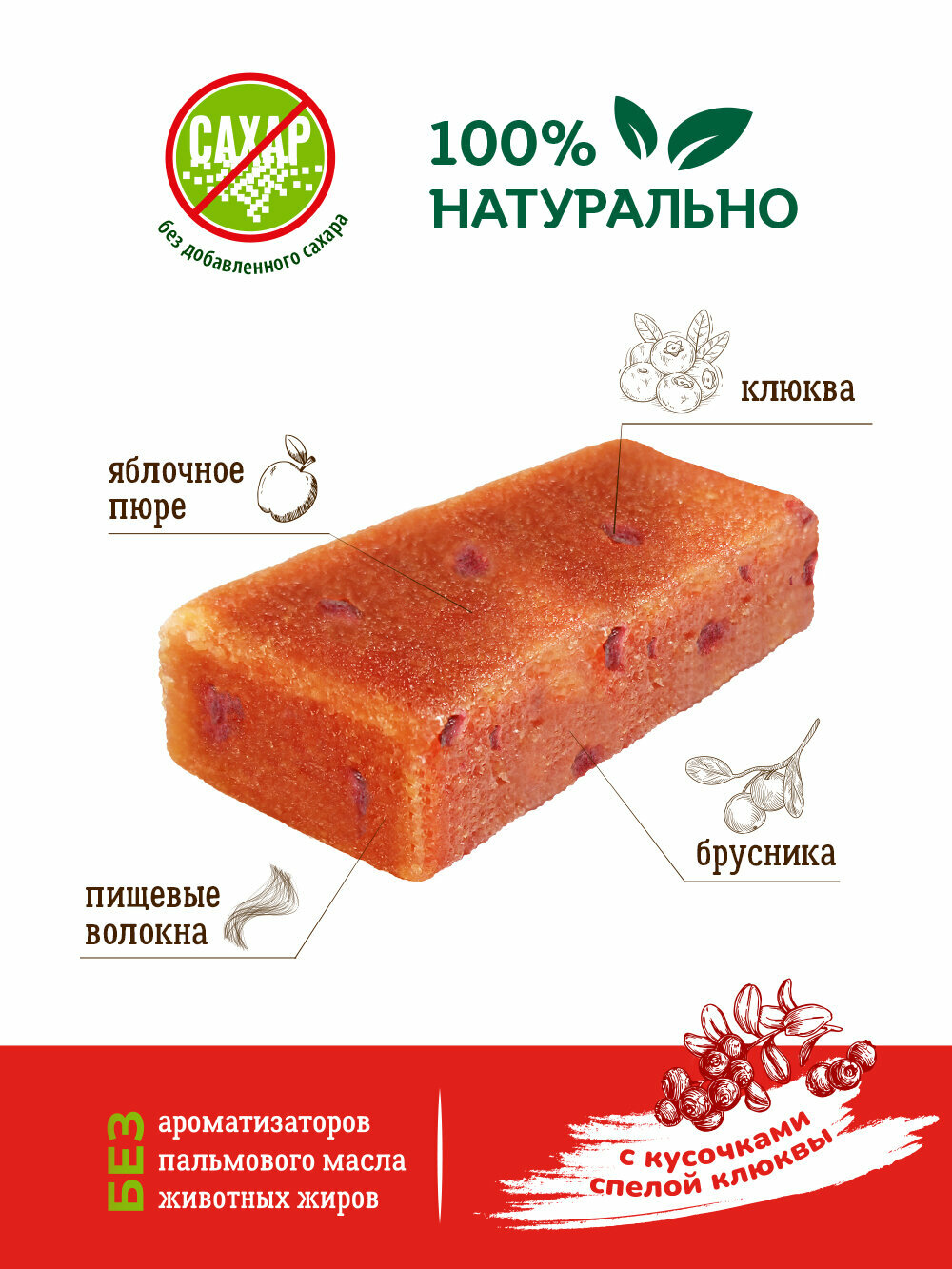 Конфета-батончик фрyктовая Vitok 100% натуральная полезная без сахара с яблочным пюре, клюквой и брусникой, 500 г