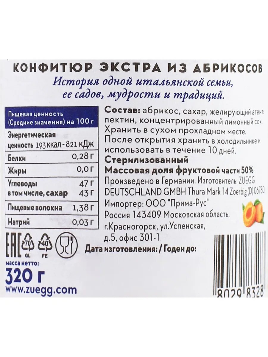 ZUEGG Абрикос конфитюр экстра 320г интересное:
