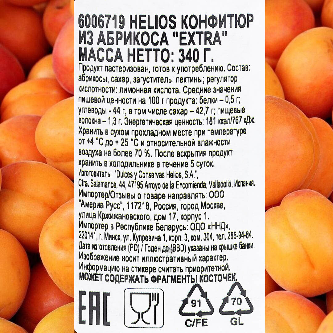 СохранитьКонфитюр HELIOS из абрикоса Extra, 340г интересное: