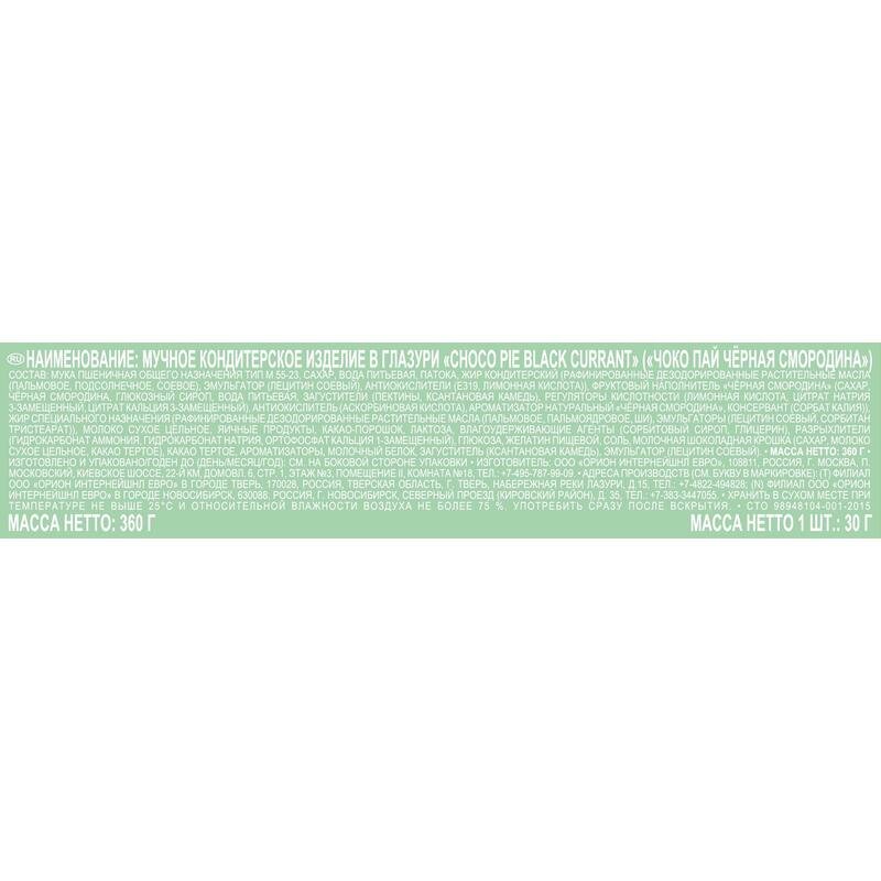 Мучное кондитерское изделие в глазури "Choco Pie BLACK CURRANT" ("Чоко пай Чёрная смородина") 360 г интересное: