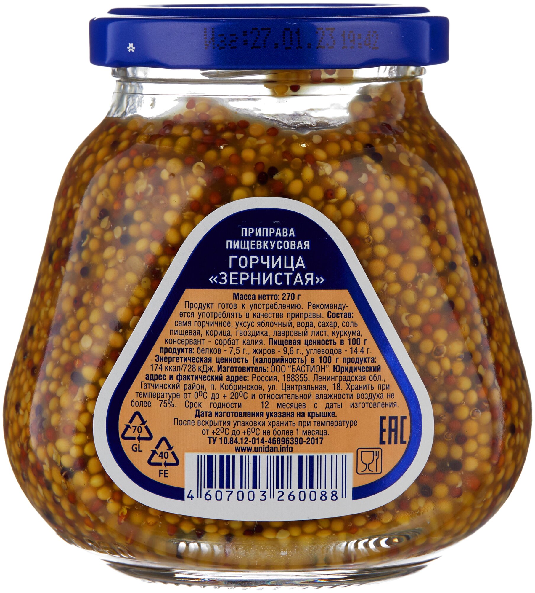 | Состав | семя горчичное, уксус яблочный, вода, сахар, соль пищевая, корица, гвоздика, лавровый лист, куркума, консервант - сорбат калия. |
