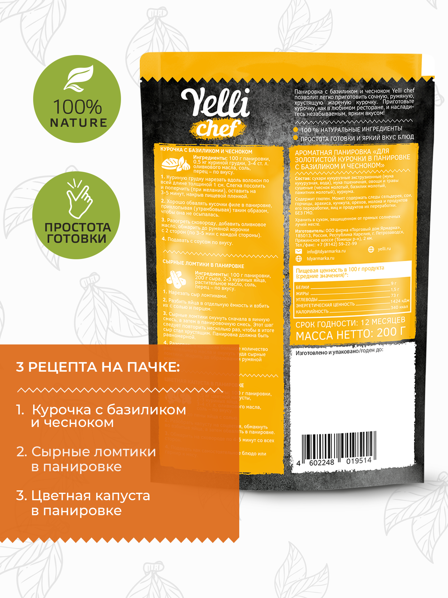 Ароматная панировка для золотистой курочки с базиликом и чесноком Yelli chef 200г интересное: