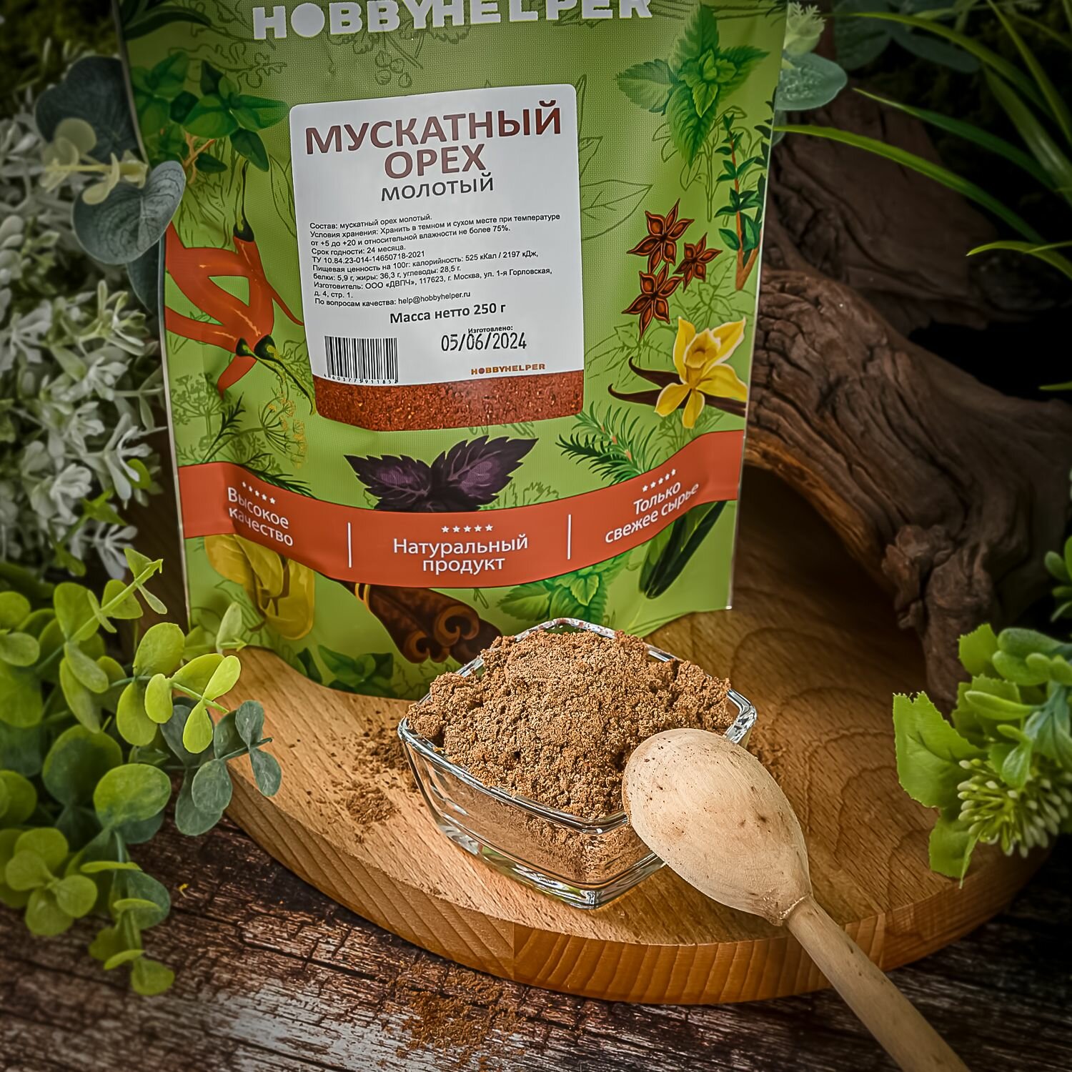 Мускатный орех HOBBYHELPER молотый дой пак 250г интересное: