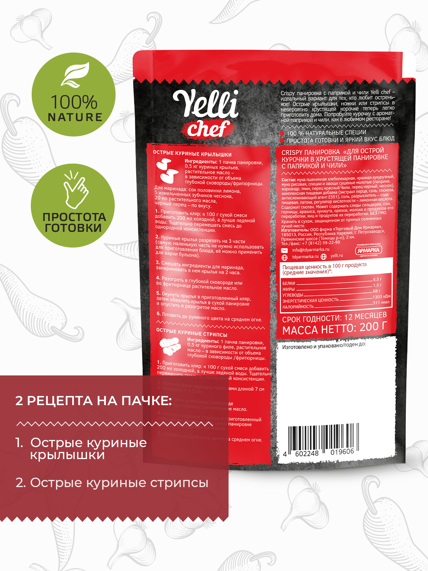 Crispy панировка для острой курочки в хрустящей панировке с паприкой и чили Yelli chef 200г интересное: