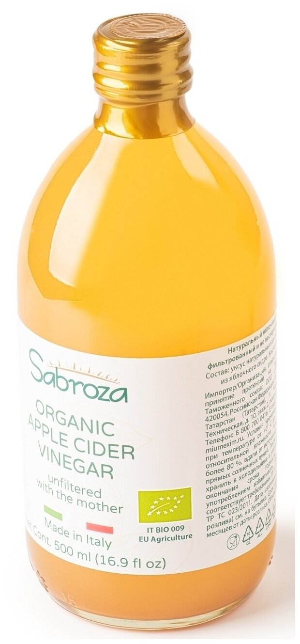 Sabroza яблочный уксус c уксусной маткой, натуральный, нефильтрованный,не пастеризованный, 500 мл, в стекле