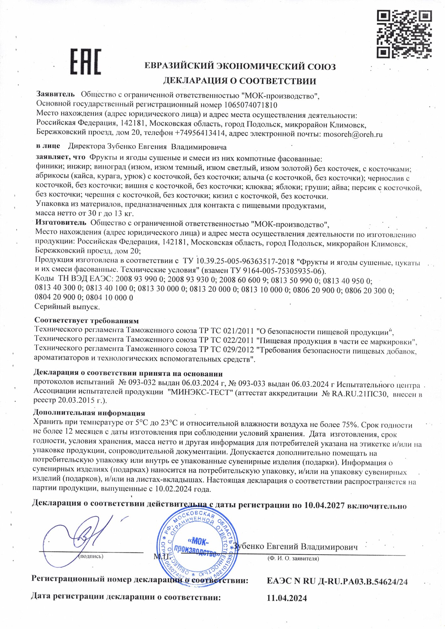 | Стандарты производства | ТУ 10.39.25-005-96363517-2018 |