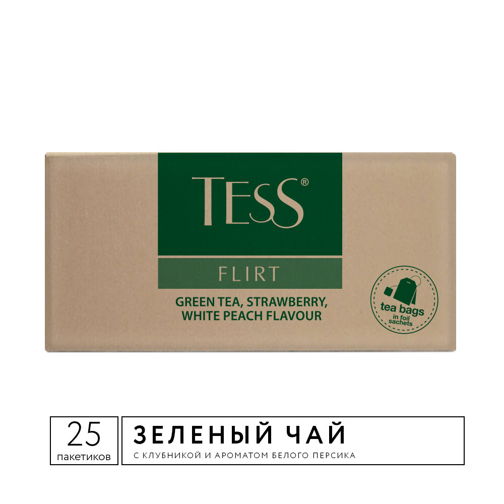 Tess Чай зеленый Flirt, клубника и белый персик, 25 пакетиков по 1,5 г