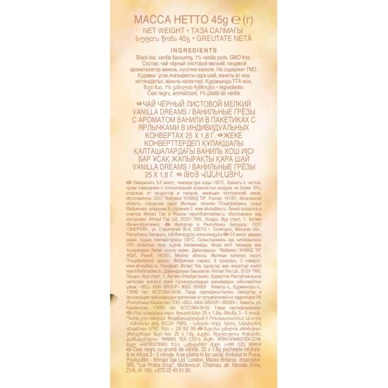 2589 Чай "Ahmad Tea", Чай Ванильные Грёзы, чёрный, пакетики с ярлычками в конвертах, 25х1,8г интересное: